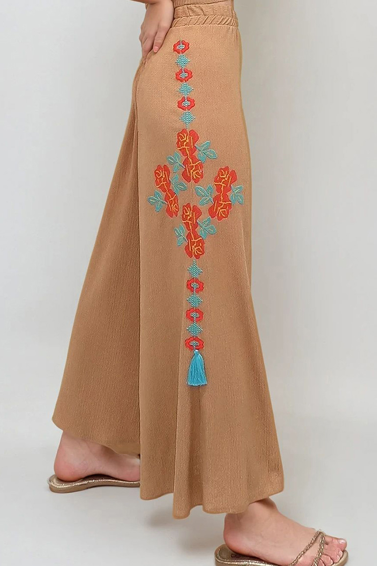 Kadın Bisküvi Yanları Etnik Desen Nakış Işlemeli Krinkıl Palazzo Pantolon Prmx13646 Kadın Bisküvi Yanları Etnik Desen Nakış Işlemeli Krinkıl Palazzo Pantolon Prmx13646 PRMX13646 XL