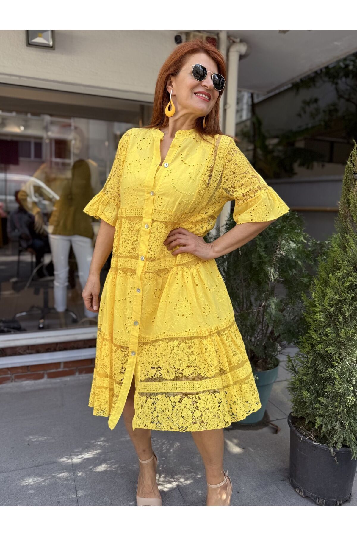 İtalyan Dantelli Güpür Midi Elbise Sarı İtalyan Dantelli Güpür Midi Elbise Sarı QKQ3G3ZJYJ Standart
