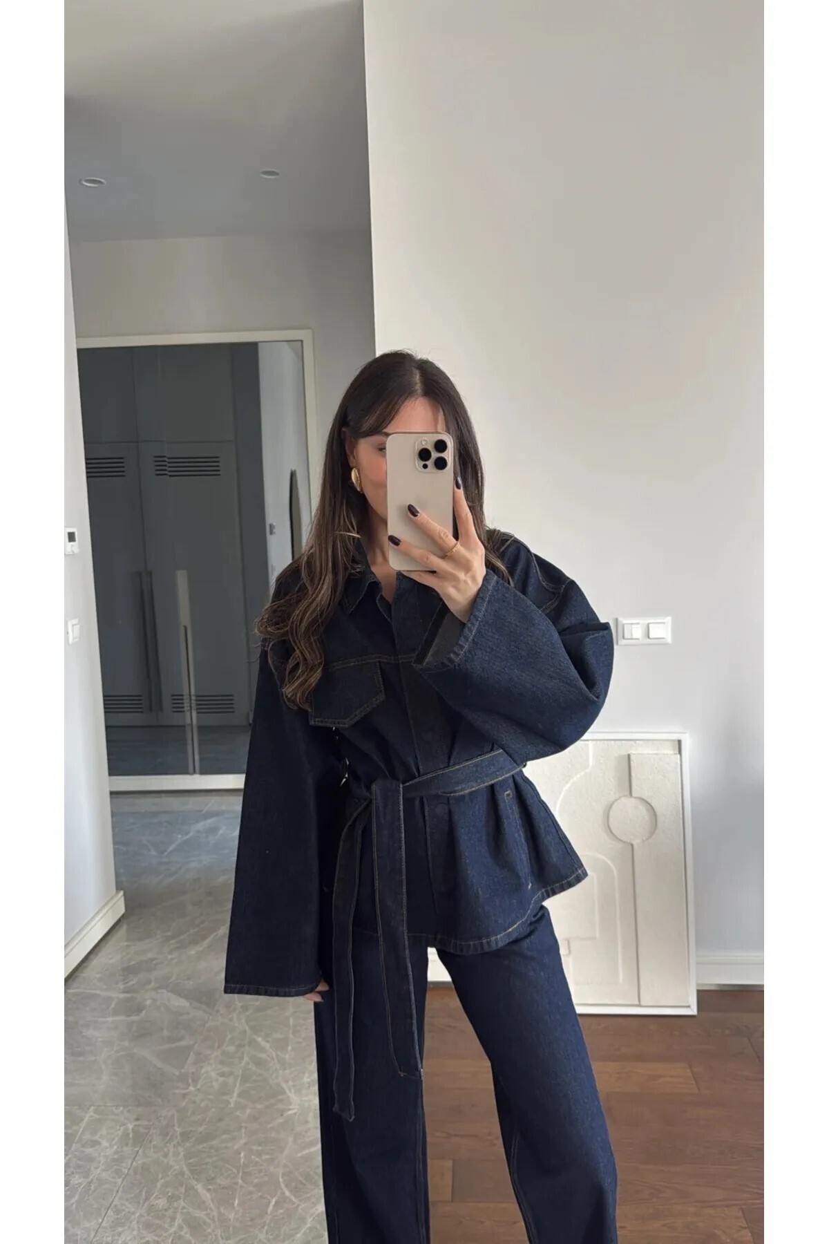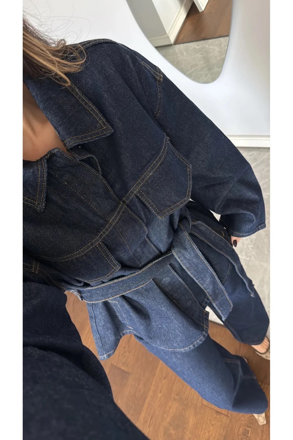 Bağlamalı Lacivert Ceket Pantolon Denim Takım Bağlamalı Lacivert Ceket Pantolon Denim Takım yenisezonbaglamalı L