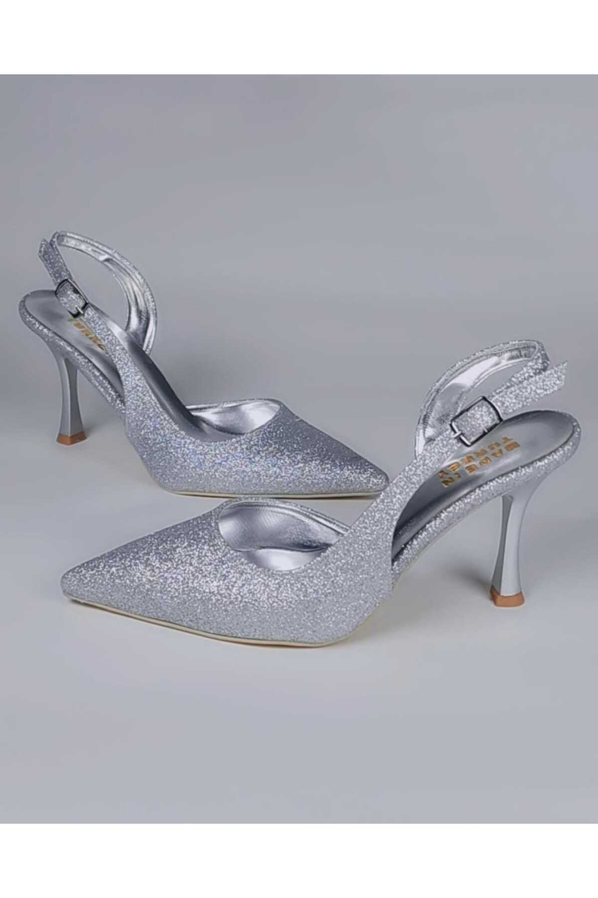Bantlı Yüksek Ince Topuklu Simli Gümüş Arkası Açık Stiletto Ayakkabı 9 Cm Topuk Bantlı Yüksek Ince Topuklu Simli Gümüş Arkası Açık Stiletto Ayakkabı 9 Cm Topuk 500ZAIN 40