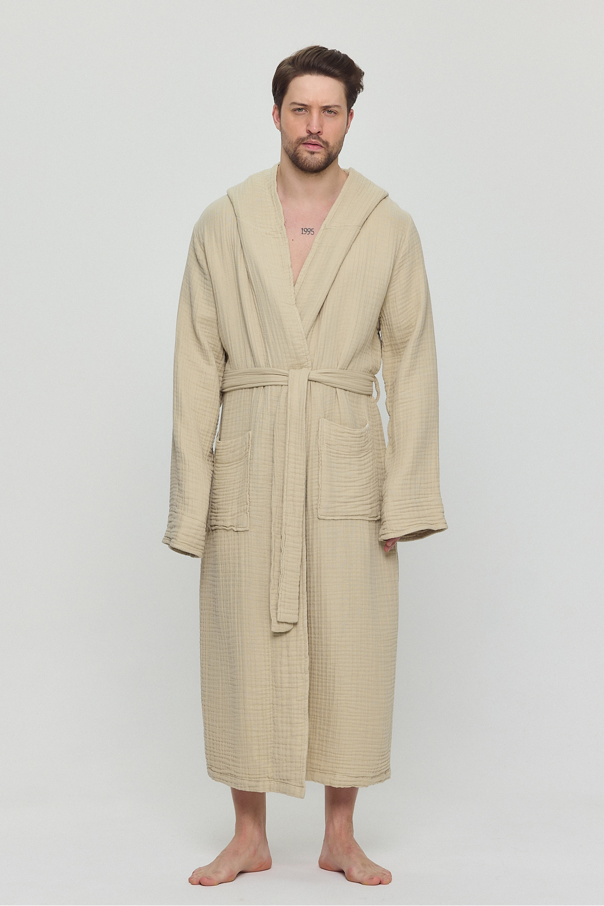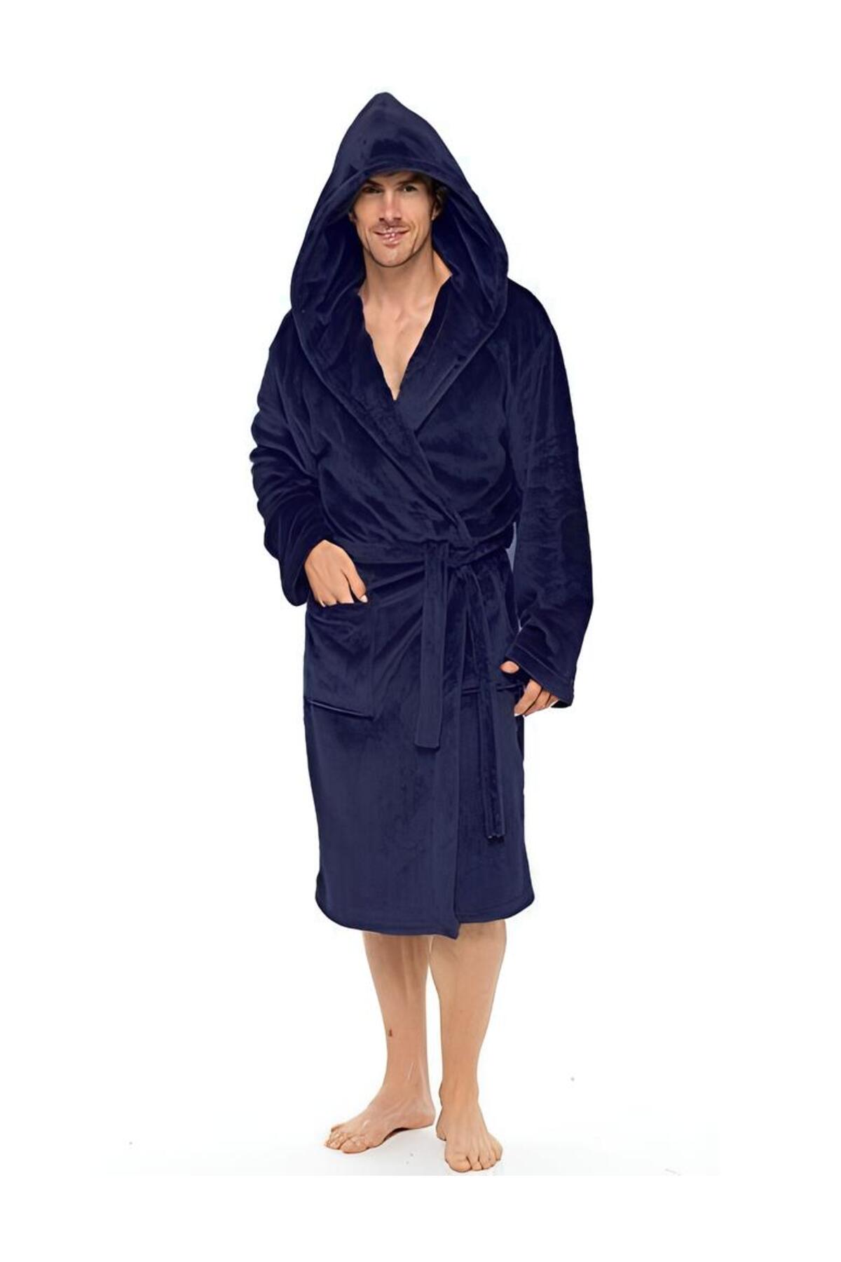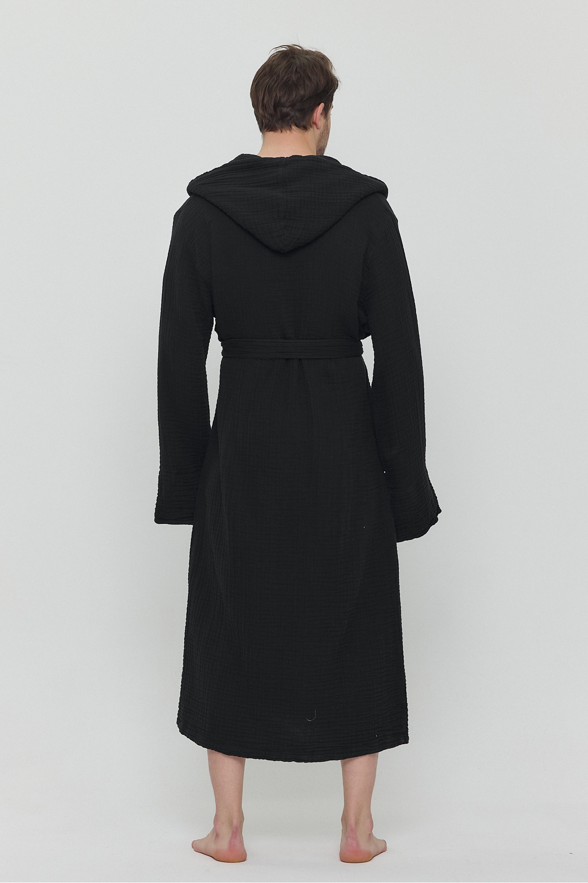 Erkek Müslin Cepli Bağlamalı Kapüşonlu Siyah Bornoz Erkek Müslin Cepli Bağlamalı Kapüşonlu Siyah Bornoz 1021ZLBN 3XL