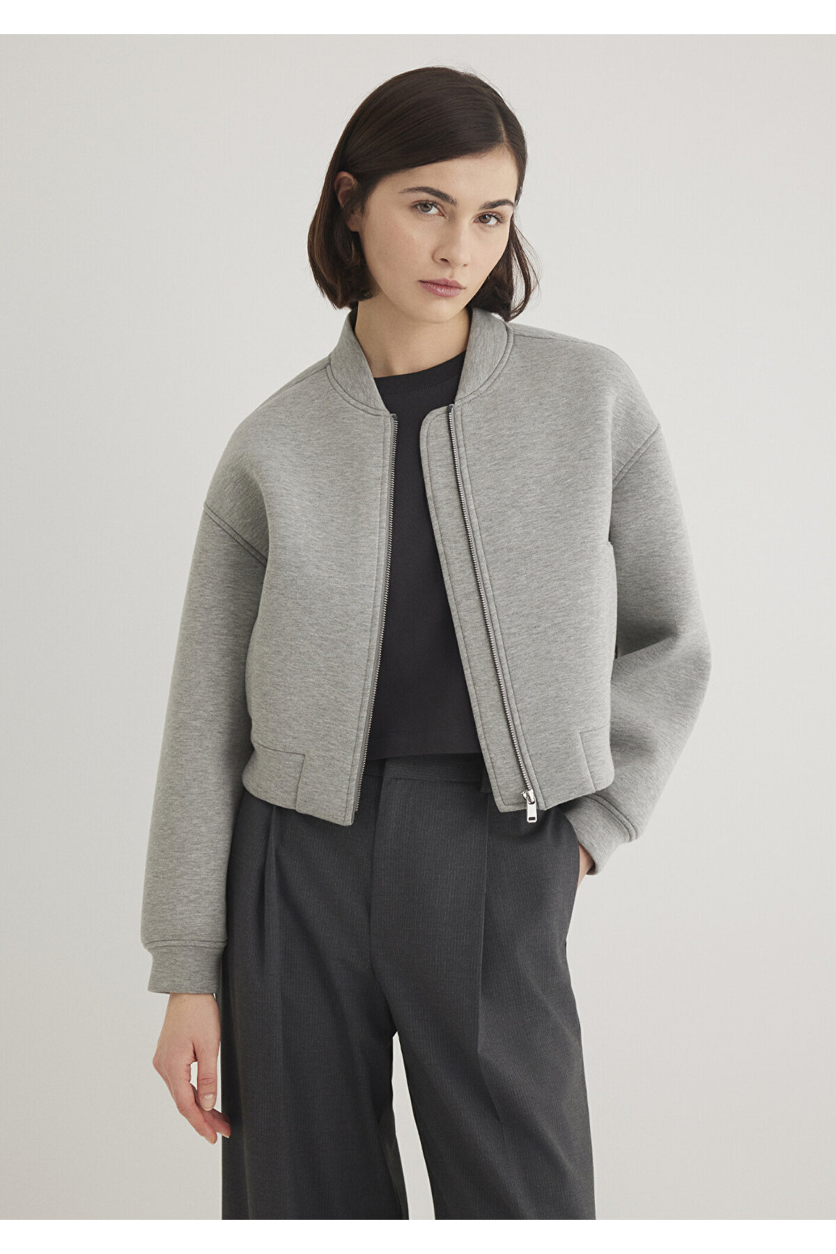 Gri Crop Bomber Ceket Crop / Kısa Kesim 1110359-88467 Gri Crop Bomber Ceket Crop / Kısa Kesim 1110359-88467 TYCDC52FBE589D2CD32817800 XL
