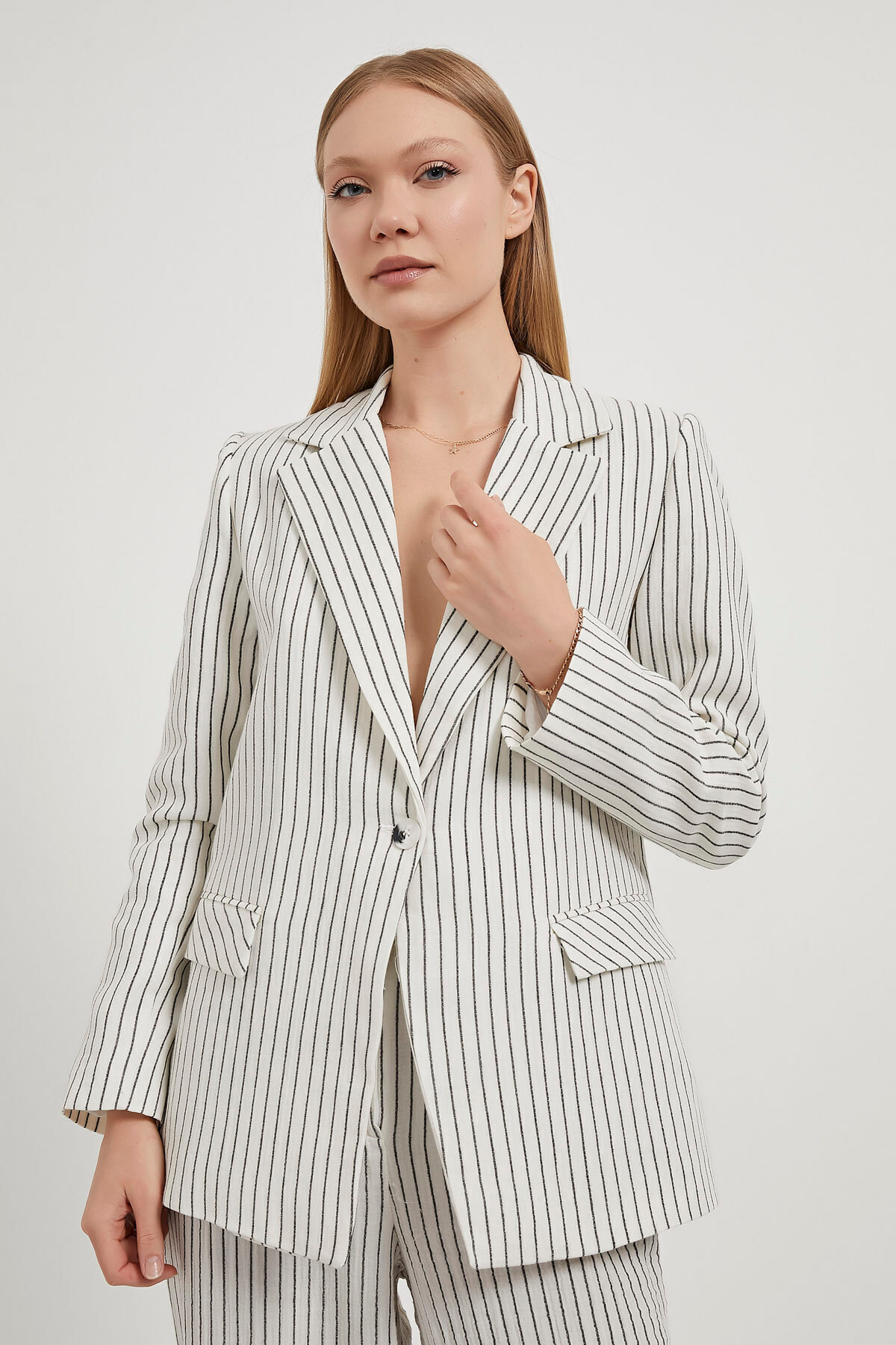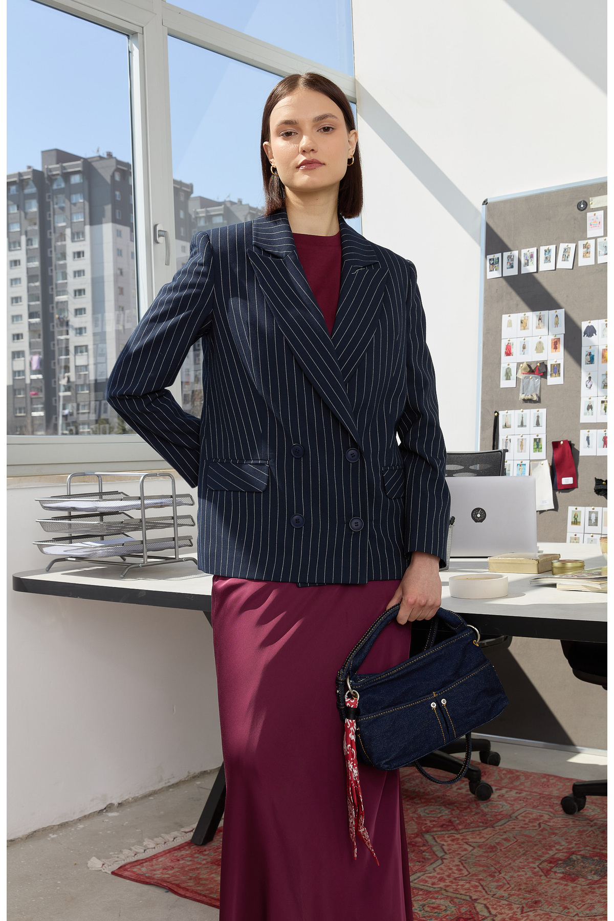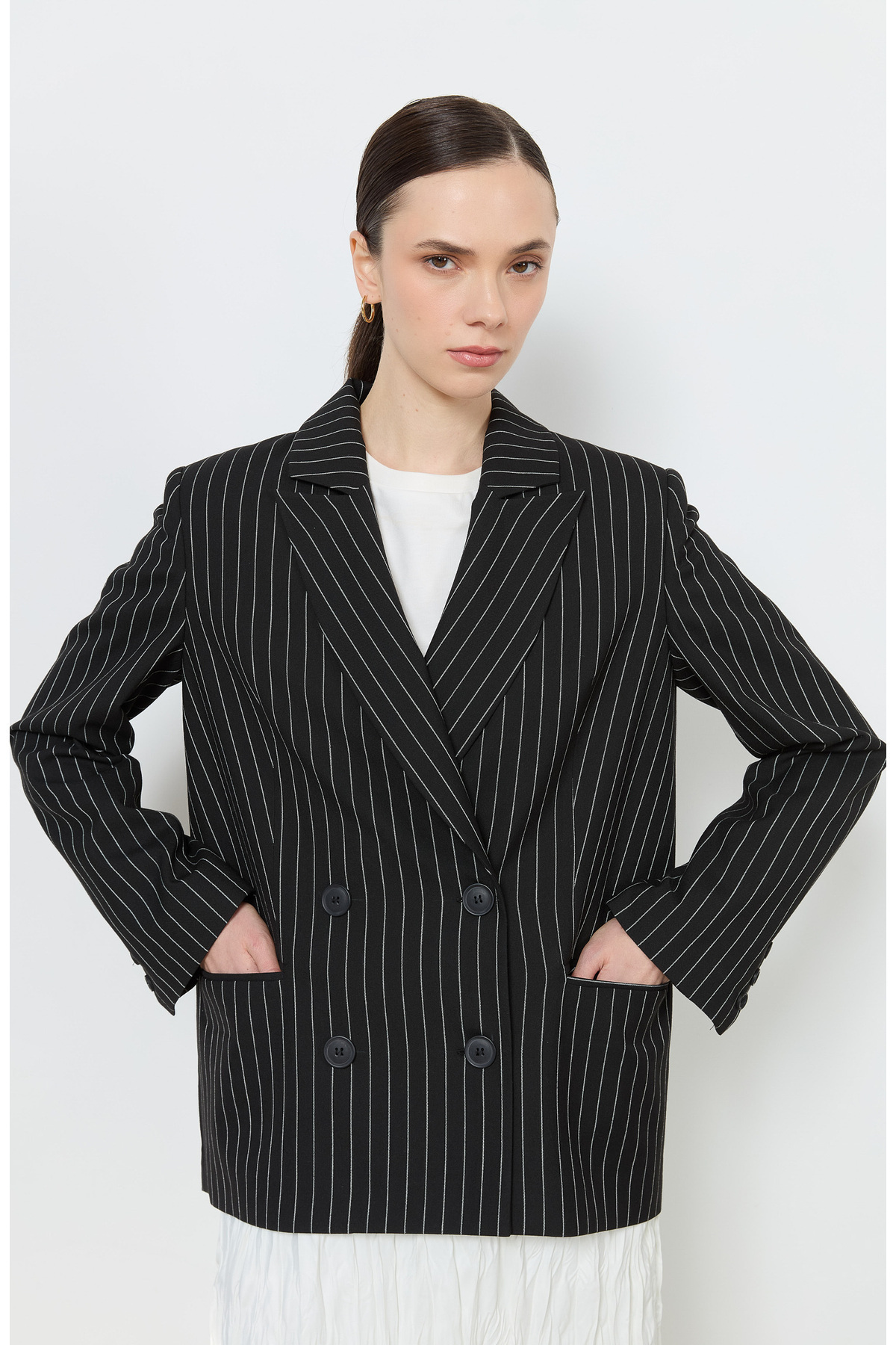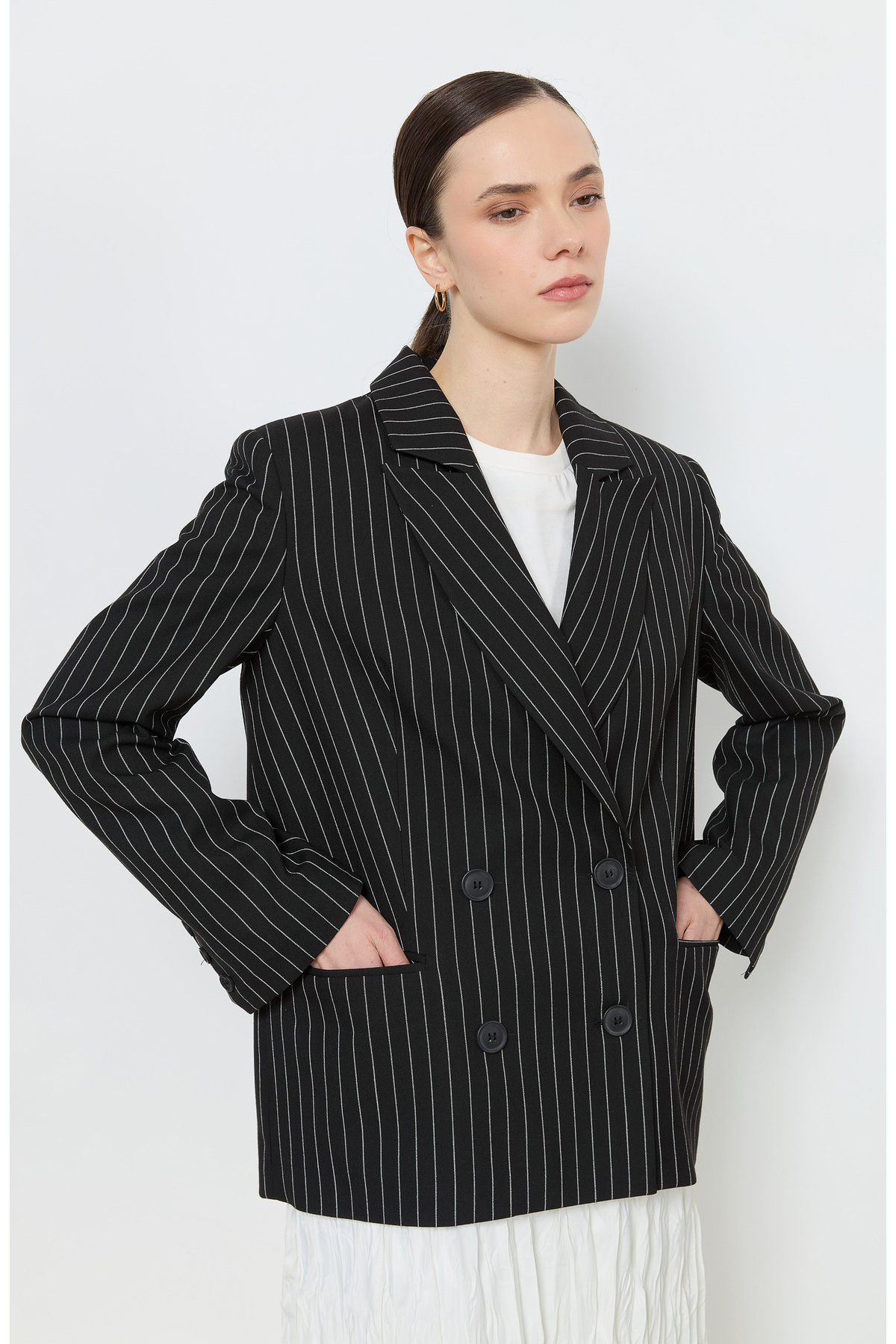 Çizgili Siyah Midi Dad Ceket Çizgili Siyah Midi Dad Ceket FA2025BS-5028-70 XL