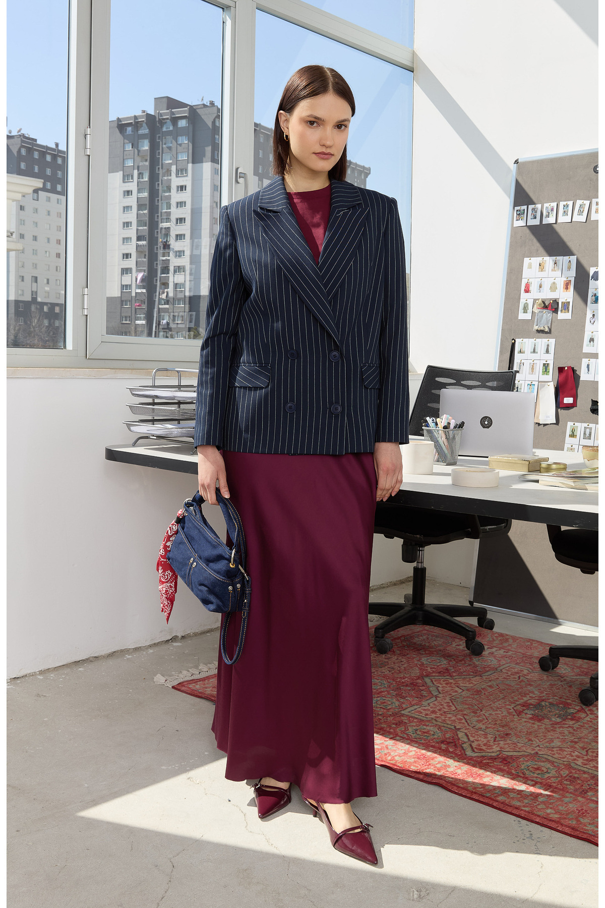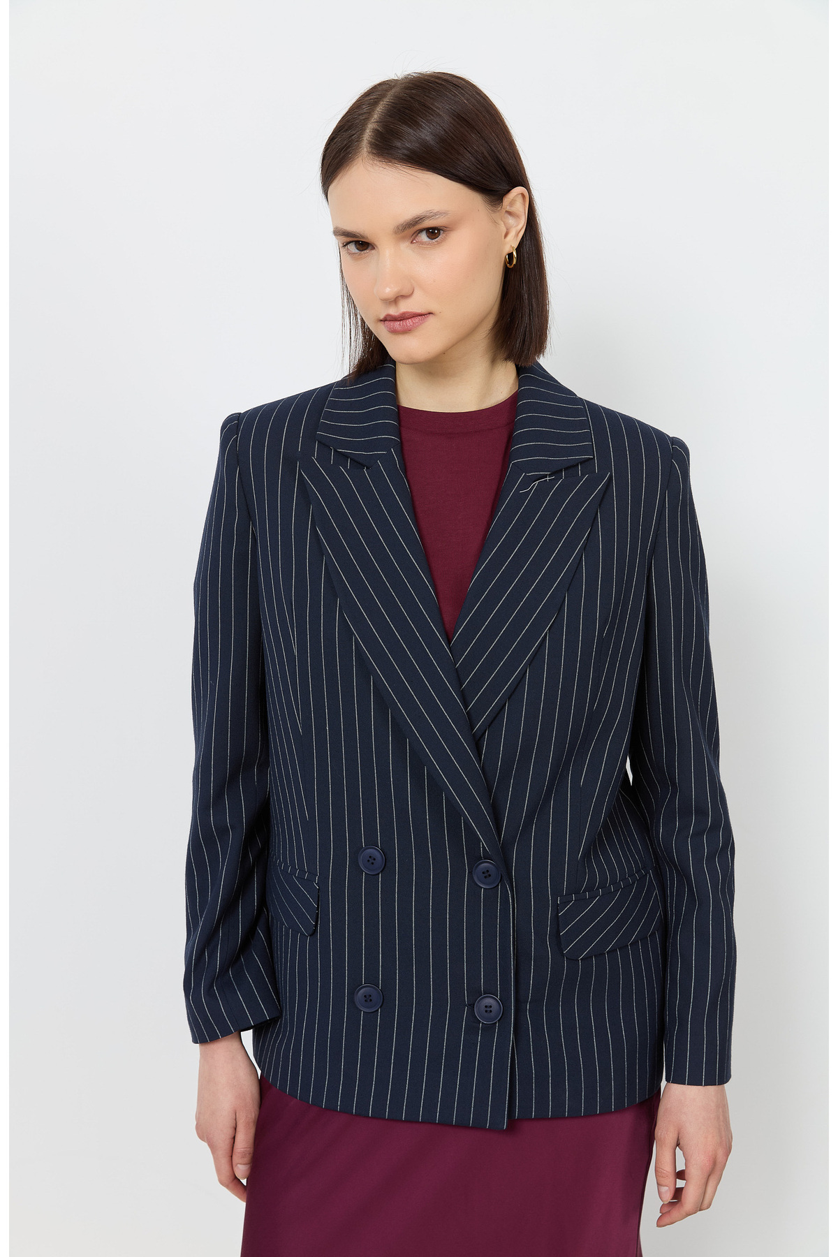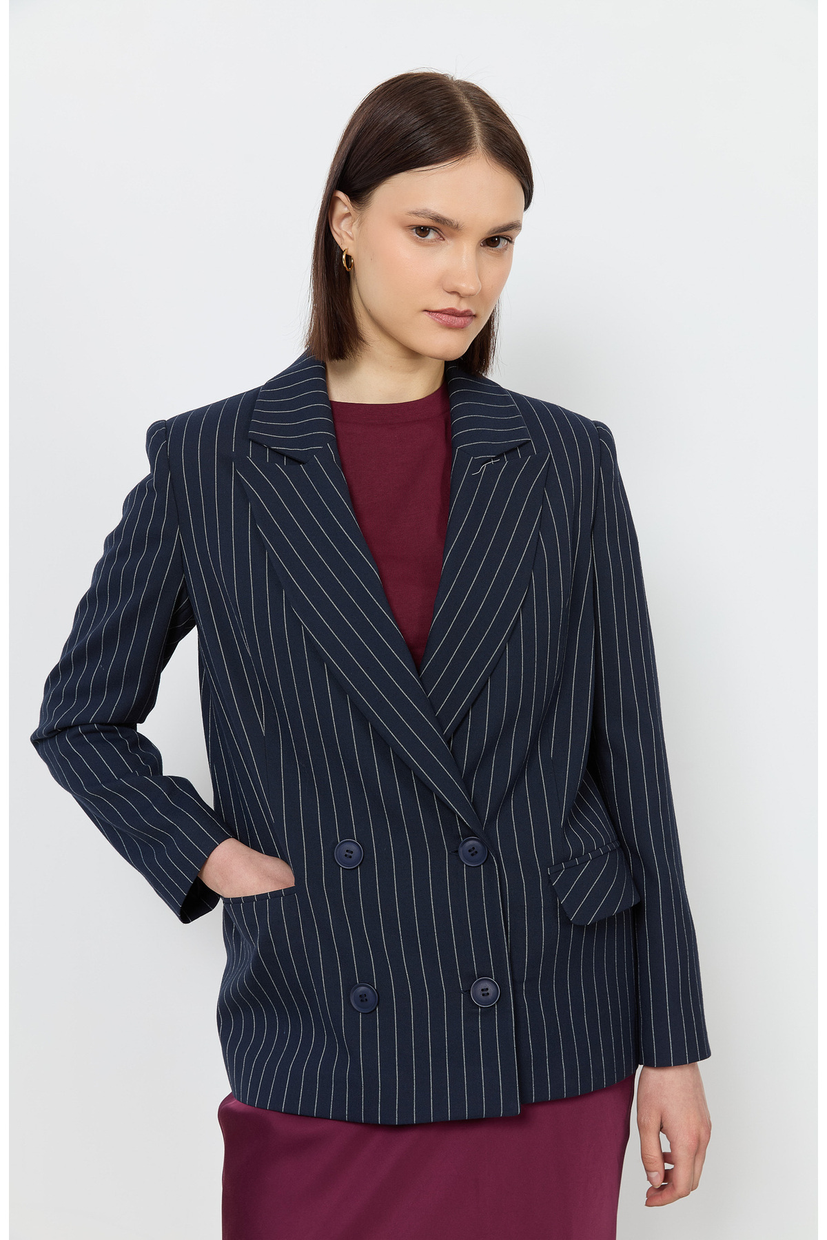 Çizgili Lacivert Midi Dad Ceket Çizgili Lacivert Midi Dad Ceket FA2025BS-5028-70 XL