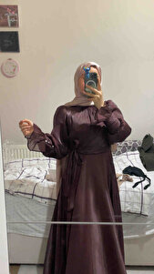 Bağlama Detaylı Kahverengi Tesettür Abiye Elbise 48051KH Bağlama Detaylı Kahverengi Tesettür Abiye Elbise 48051KH OZD-48051 54