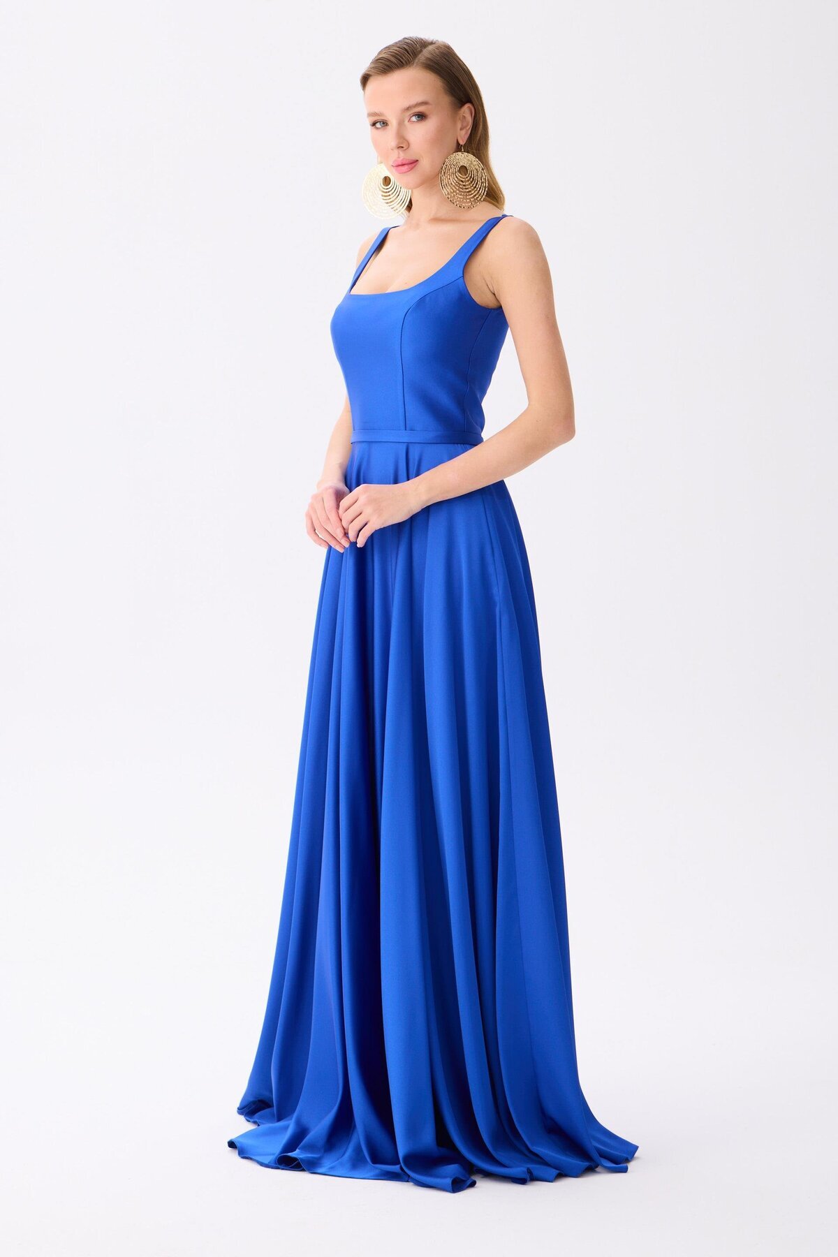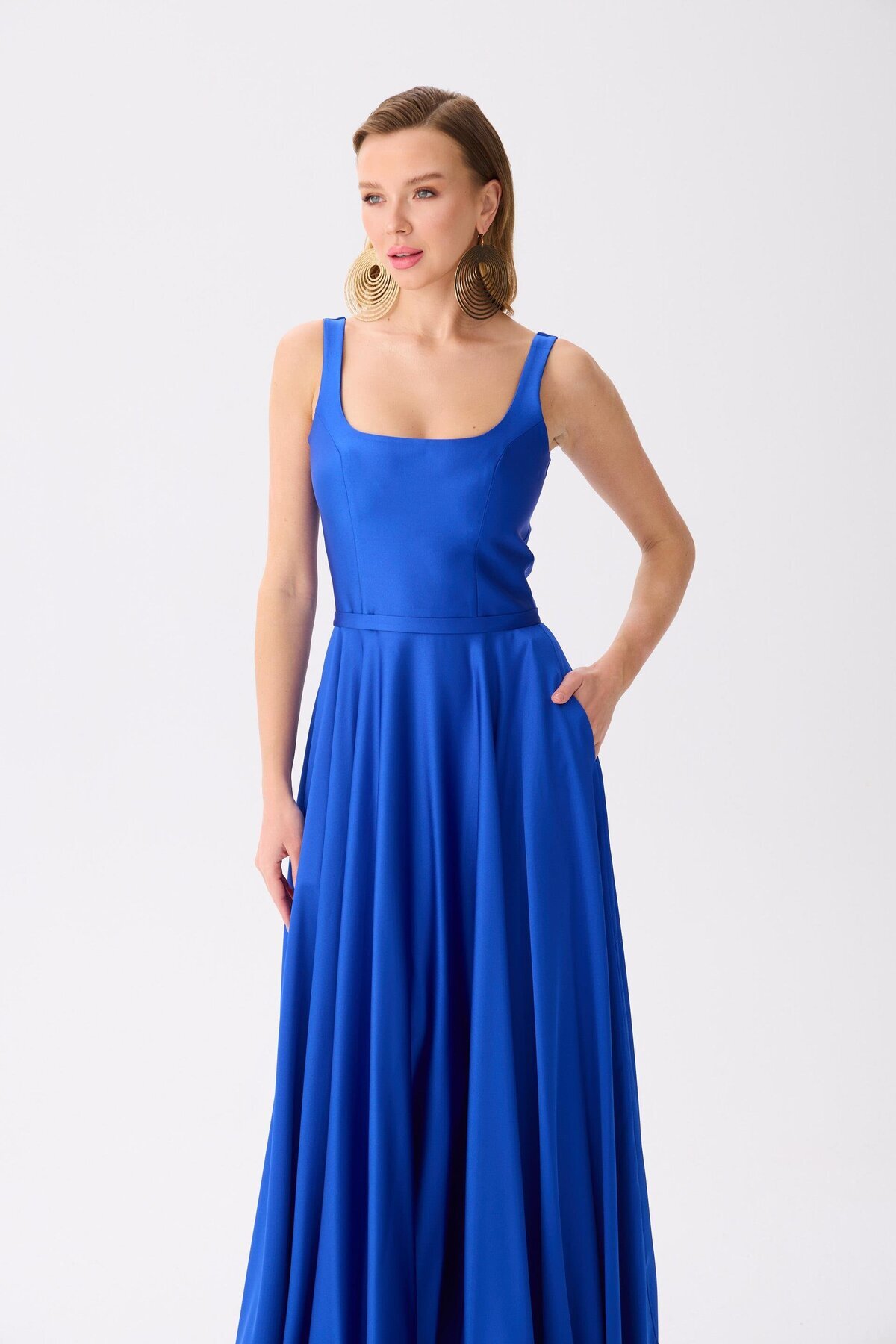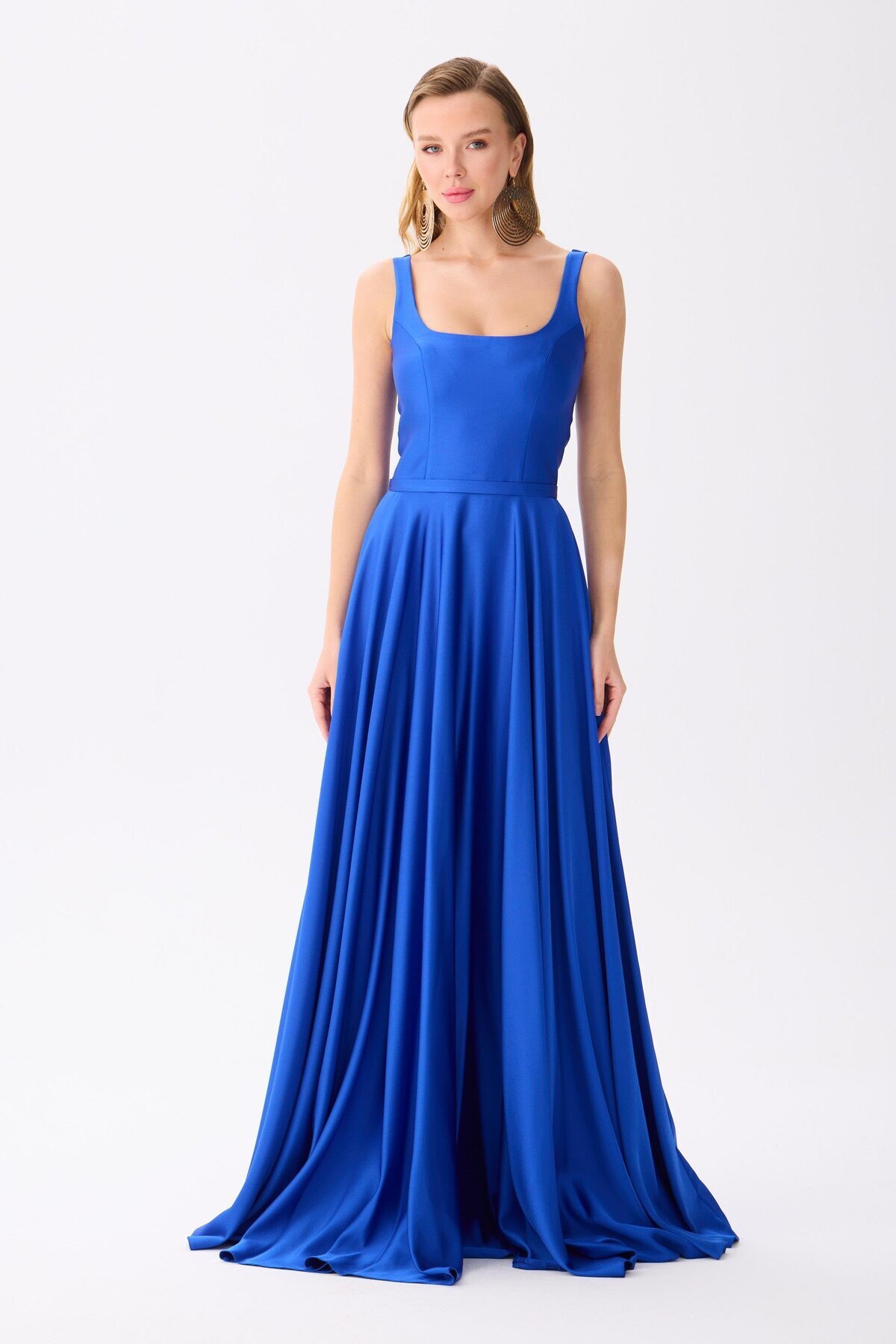 Saks Kare Yaka Saten Abiye Elbise Saks Kare Yaka Saten Abiye Elbise 58506 48
