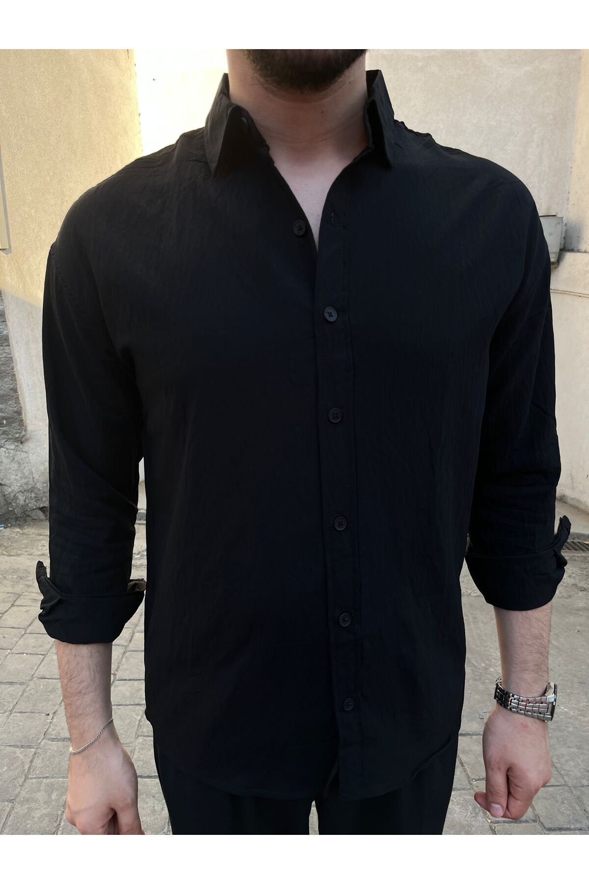 Erkek Siyah Rahat Kesim Dokulu Oversize Salaş Aerobin Gömlek Erkek Siyah Rahat Kesim Dokulu Oversize Salaş Aerobin Gömlek TMBG4556 XL