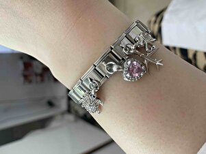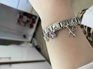 4 Charmlı İtalyan Çelik Bileklik Kırmızı Kalpli Açılışa Özel 4 Charmlı İtalyan Çelik Bileklik Kırmızı Kalpli Açılışa Özel pembe kalp uçak çelik 19