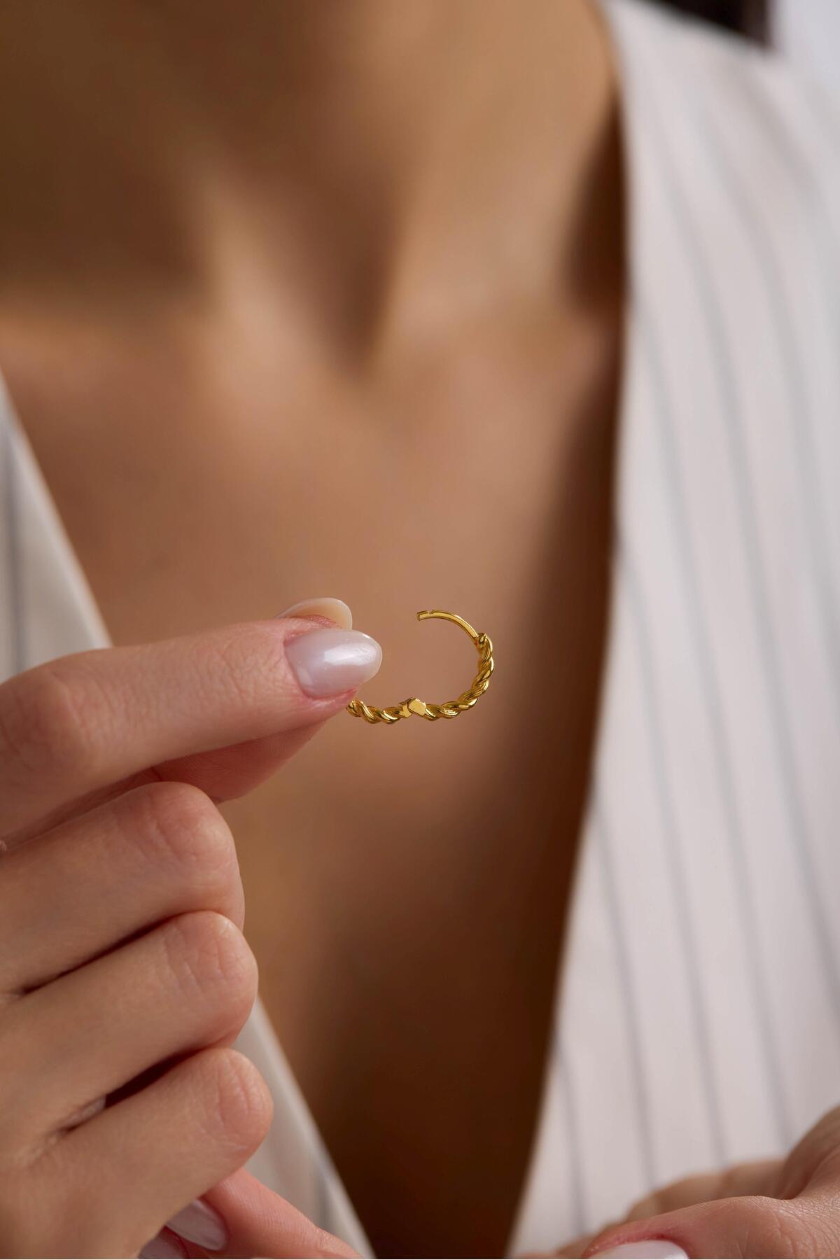 14 Ayar Burgu Halka Altın Küpe 14 Ayar Burgu Halka Altın Küpe MRT2526 تک سایز