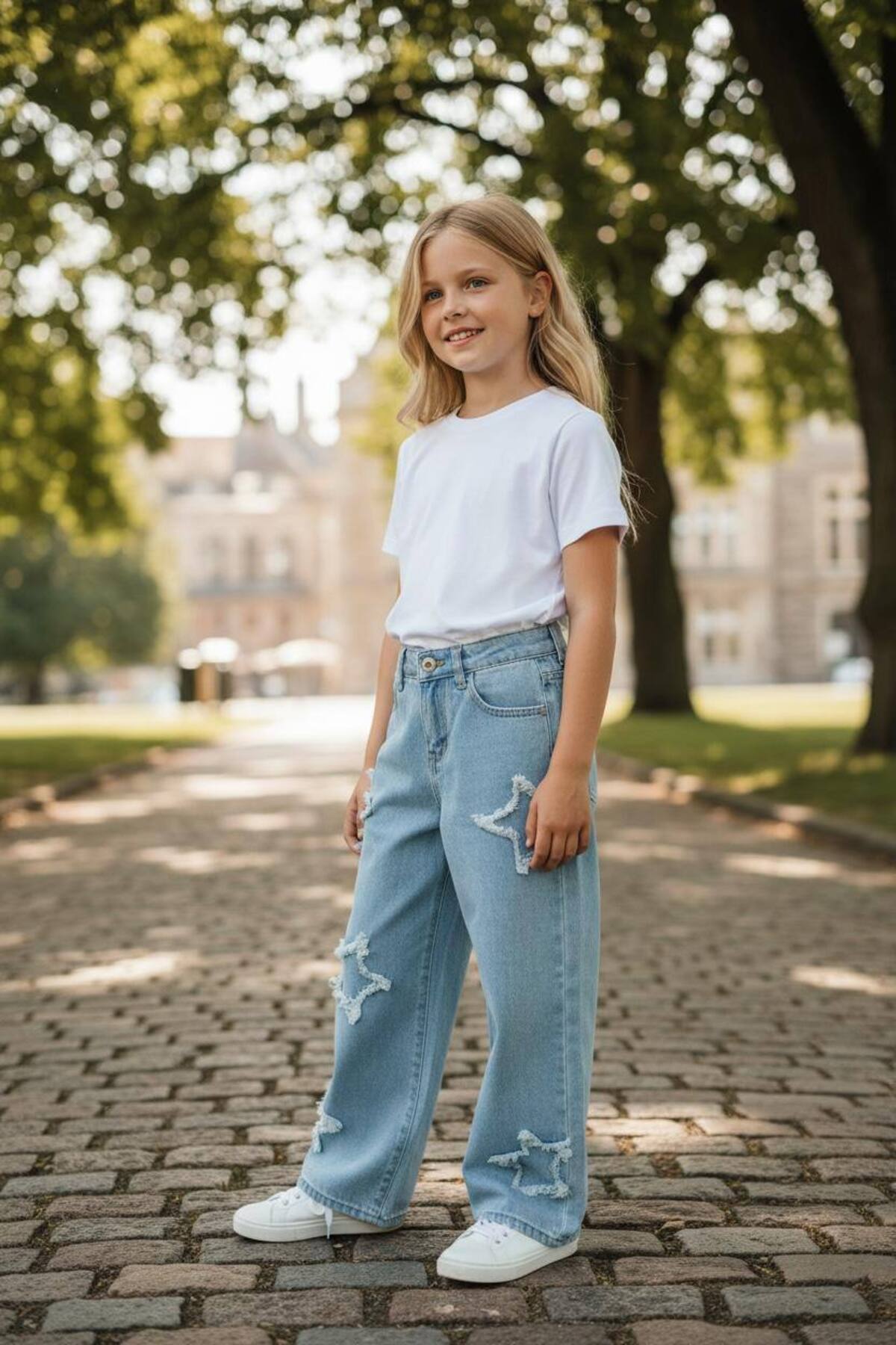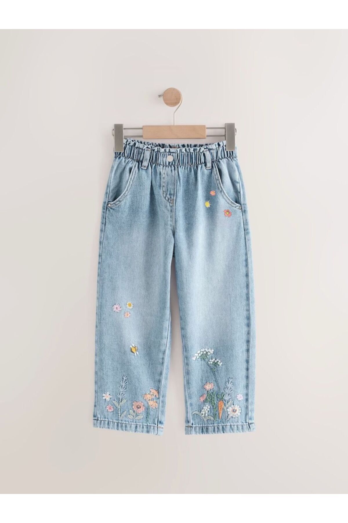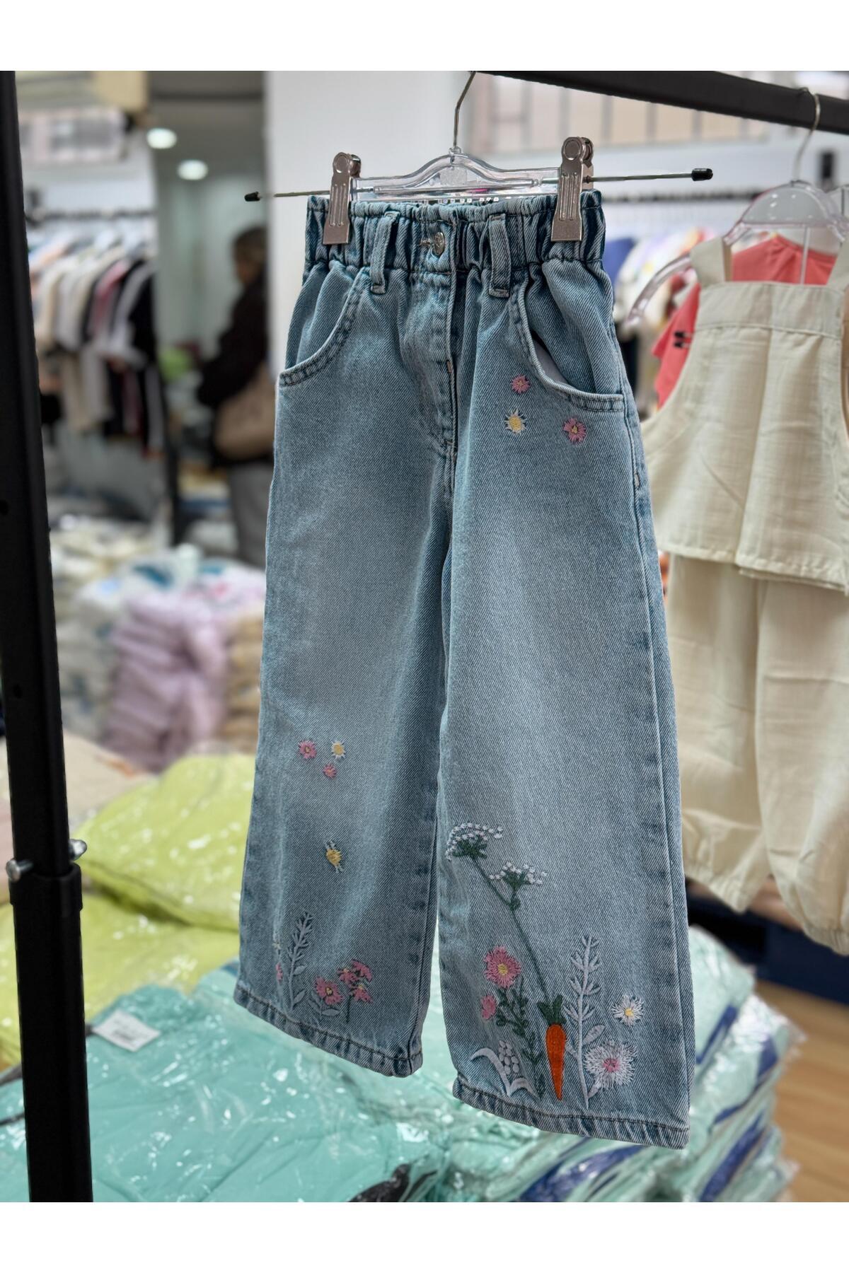 Kız Çocuk Denim Çiçekli Baskı Nakışlı Barrel Fit Jean Pantolon Kız Çocuk Denim Çiçekli Baskı Nakışlı Barrel Fit Jean Pantolon 1-AG-005 2-3 Yaş
