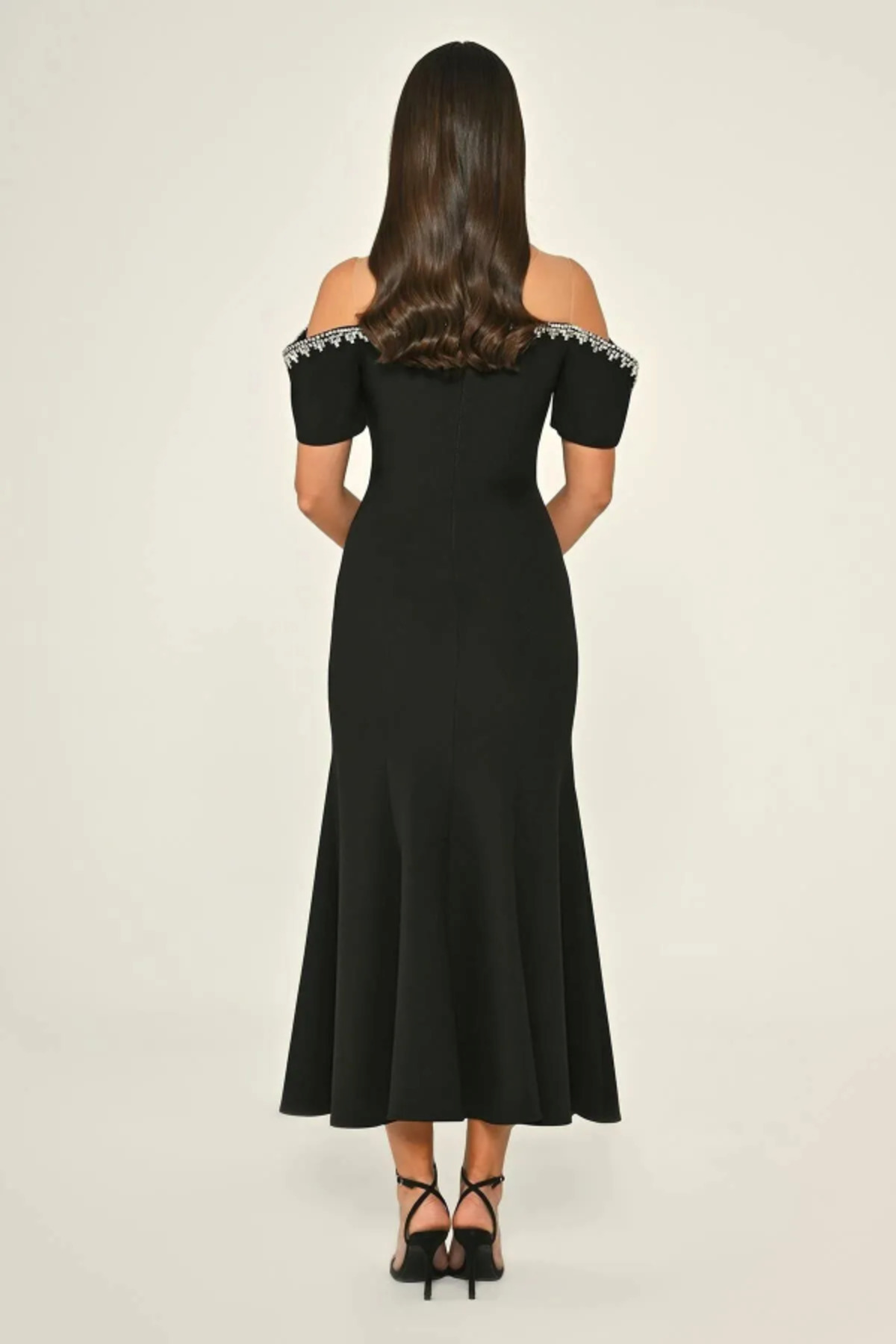 Kadın Abiye Yakası Taşlı Düşük Kol Krep Şık Midi Elbise Kadın Abiye Yakası Taşlı Düşük Kol Krep Şık Midi Elbise 7043 46