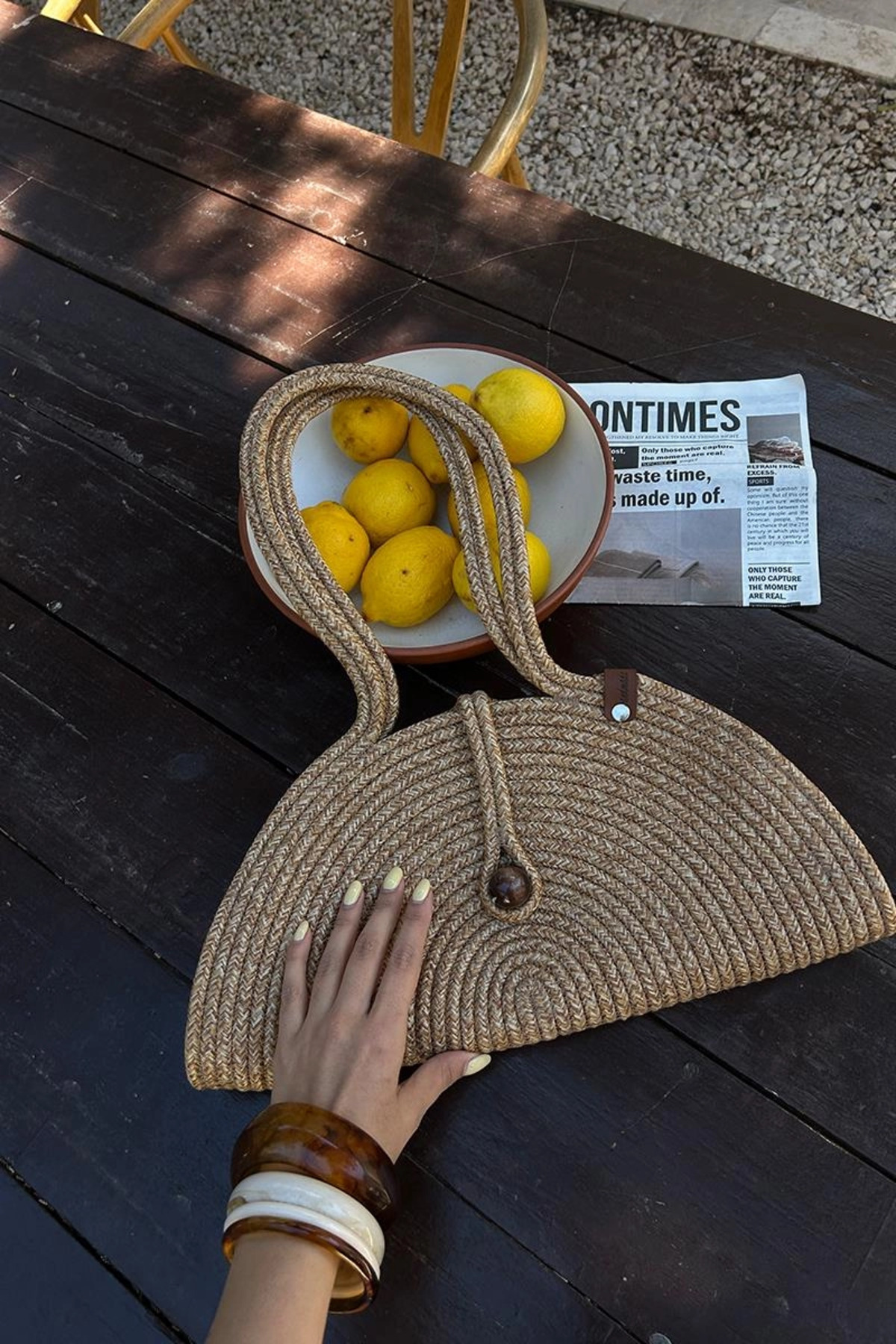 Mia Doğal Ahşap Boncuklu Hasır Görünümlü Omuz Çantası Mia Doğal Ahşap Boncuklu Hasır Görünümlü Omuz Çantası miadüğmelimvx تک سایز