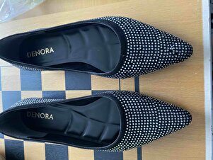 Siyah Sivri Burun Taşlı Babet Ayakkabı Siyah Sivri Burun Taşlı Babet Ayakkabı EİS09 40