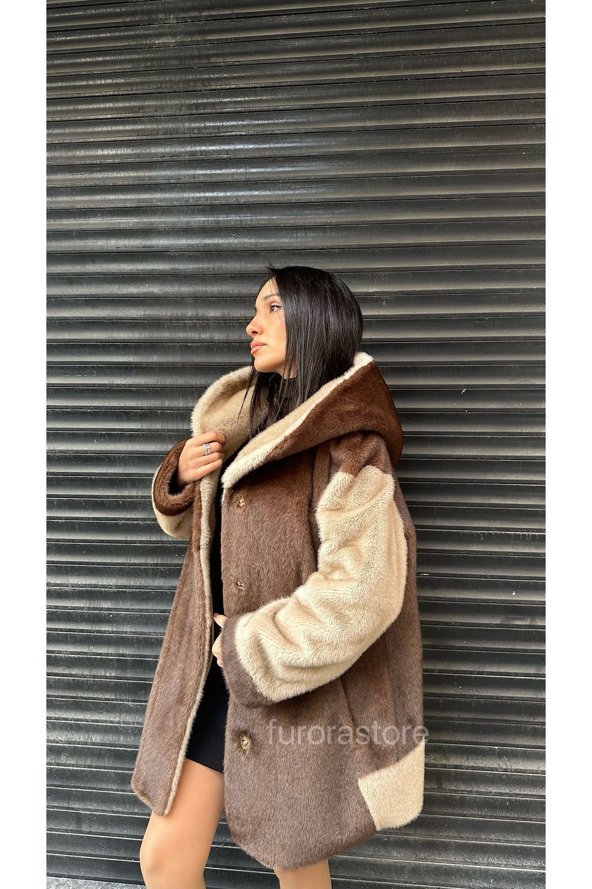 Alkantra Kumaş Suni Kürklü Kapüşonlu Ceket- Kadın Kürklü Uzun Kaban Alkantra Kumaş Suni Kürklü Kapüşonlu Ceket- Kadın Kürklü Uzun Kaban rmzzn 2XL