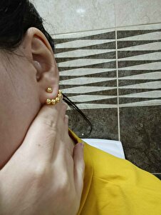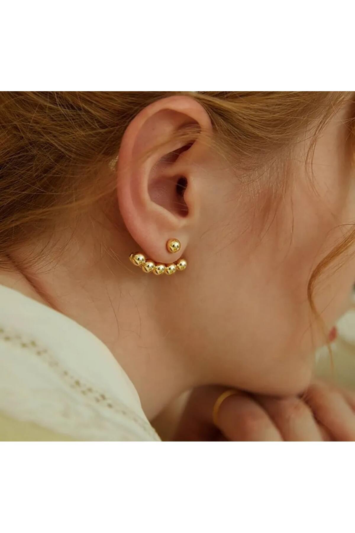 Şık Top Detaylı Küpe Altın Renk Paslanmaz Çelik, Modern Kadın Küpesi Şık Top Detaylı Küpe Altın Renk Paslanmaz Çelik, Modern Kadın Küpesi 205DRZ تک سایز