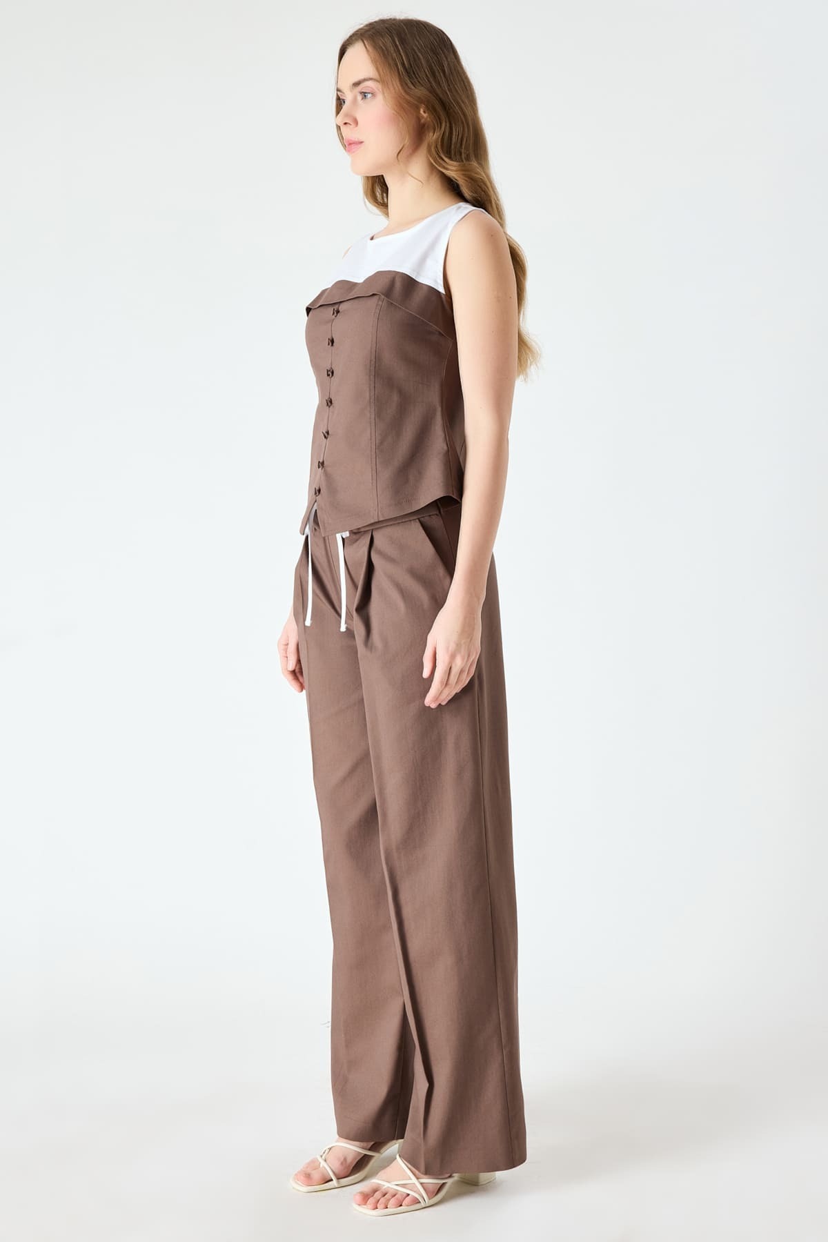 Çift renkli düğme detaylı bluz Çift renkli düğme detaylı bluz 351114060 4