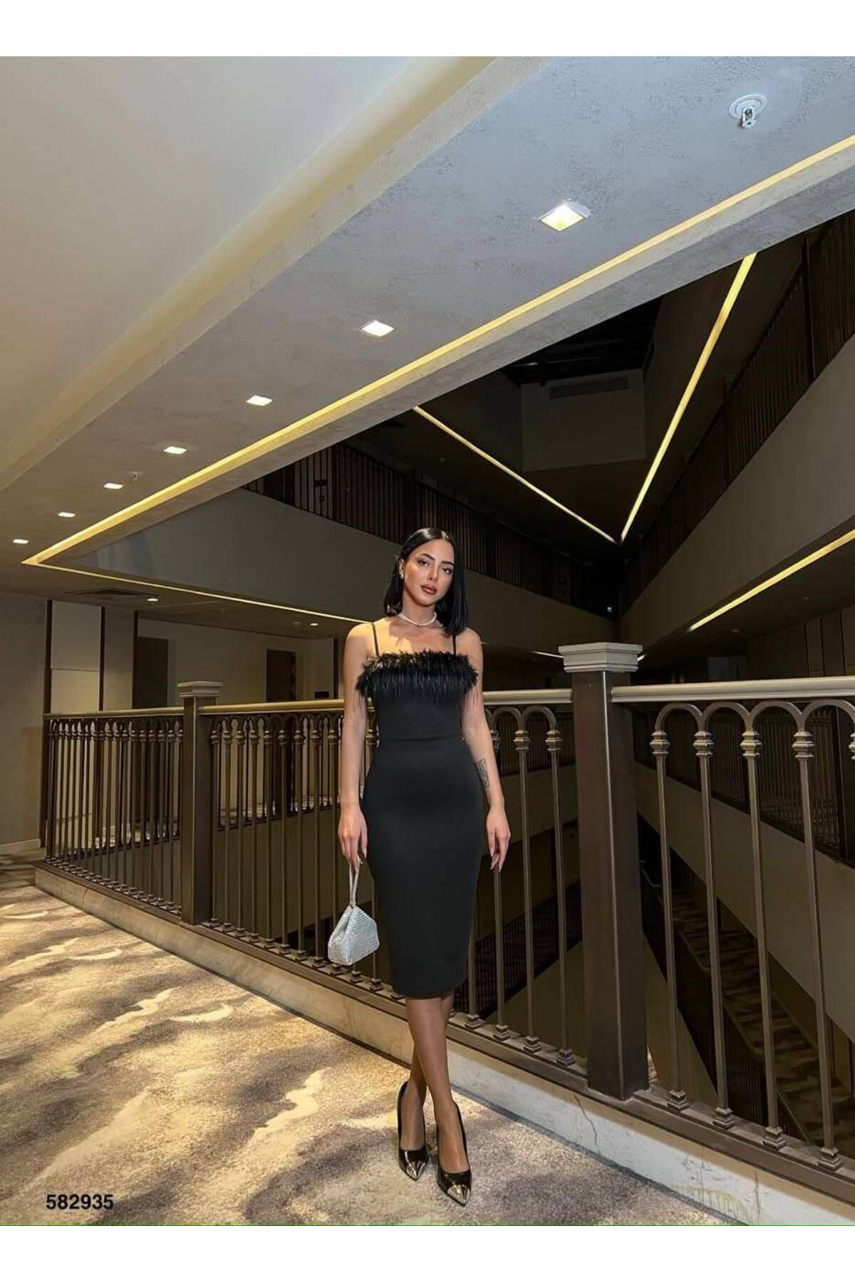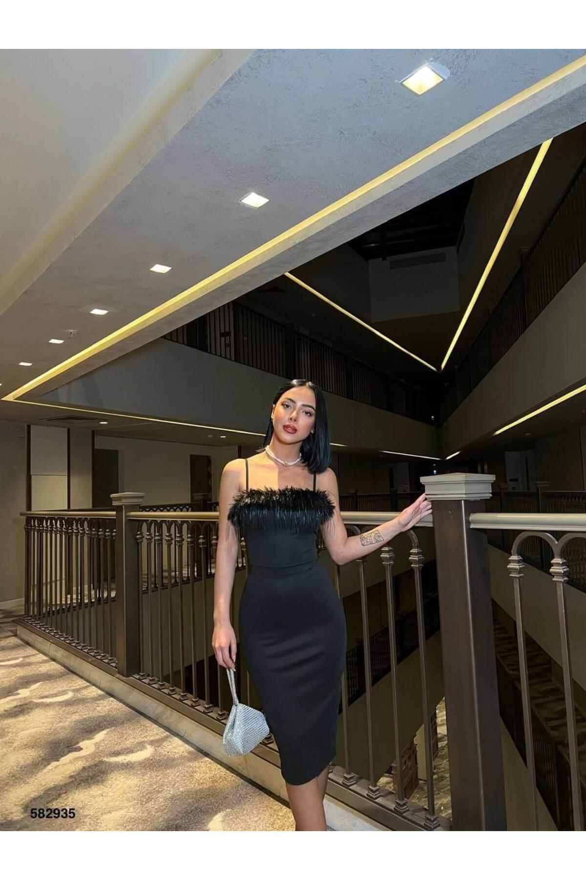 Otrişli Tüylü Vücuda Oturan Siyah Şık Gece Elbisesi Otrişli Tüylü Vücuda Oturan Siyah Şık Gece Elbisesi ELB122 4XL