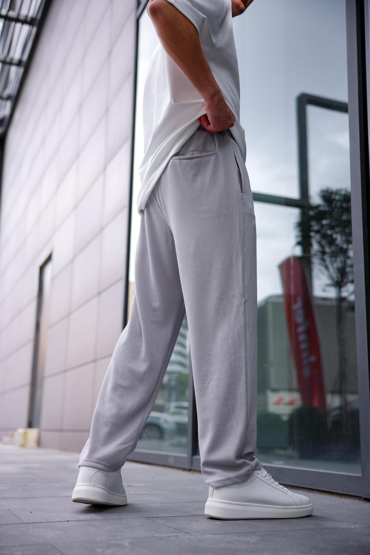 Erkek Gri Renk Burgu Desen Örme Kumaş Baggy Pantolon Erkek Gri Renk Burgu Desen Örme Kumaş Baggy Pantolon PBD3096 2XL