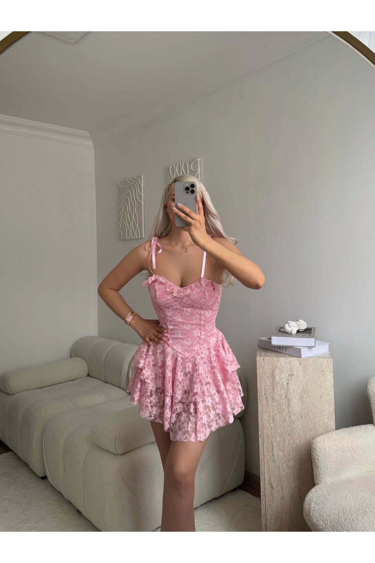 Şortlu Bel Korse Dantel Elbise - PUDRA Şortlu Bel Korse Dantel Elbise - PUDRA P2805S7495 L