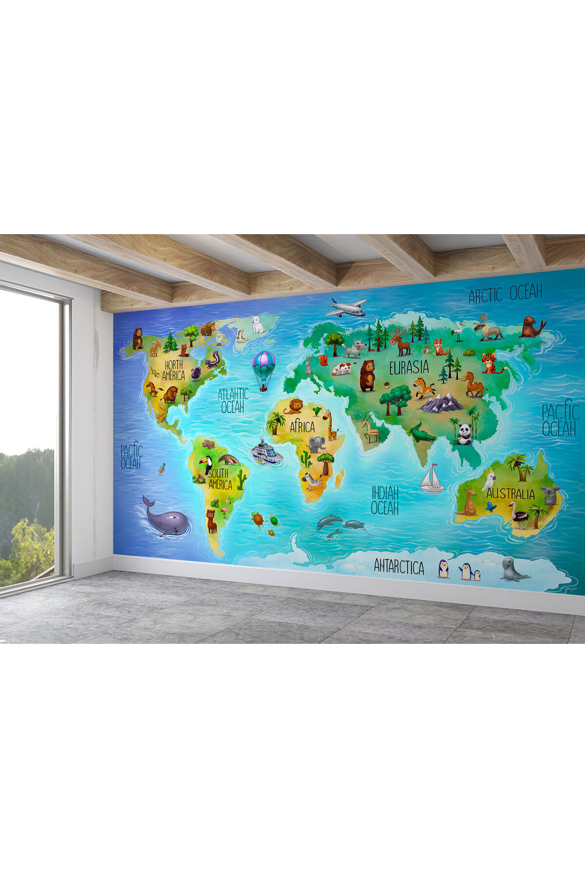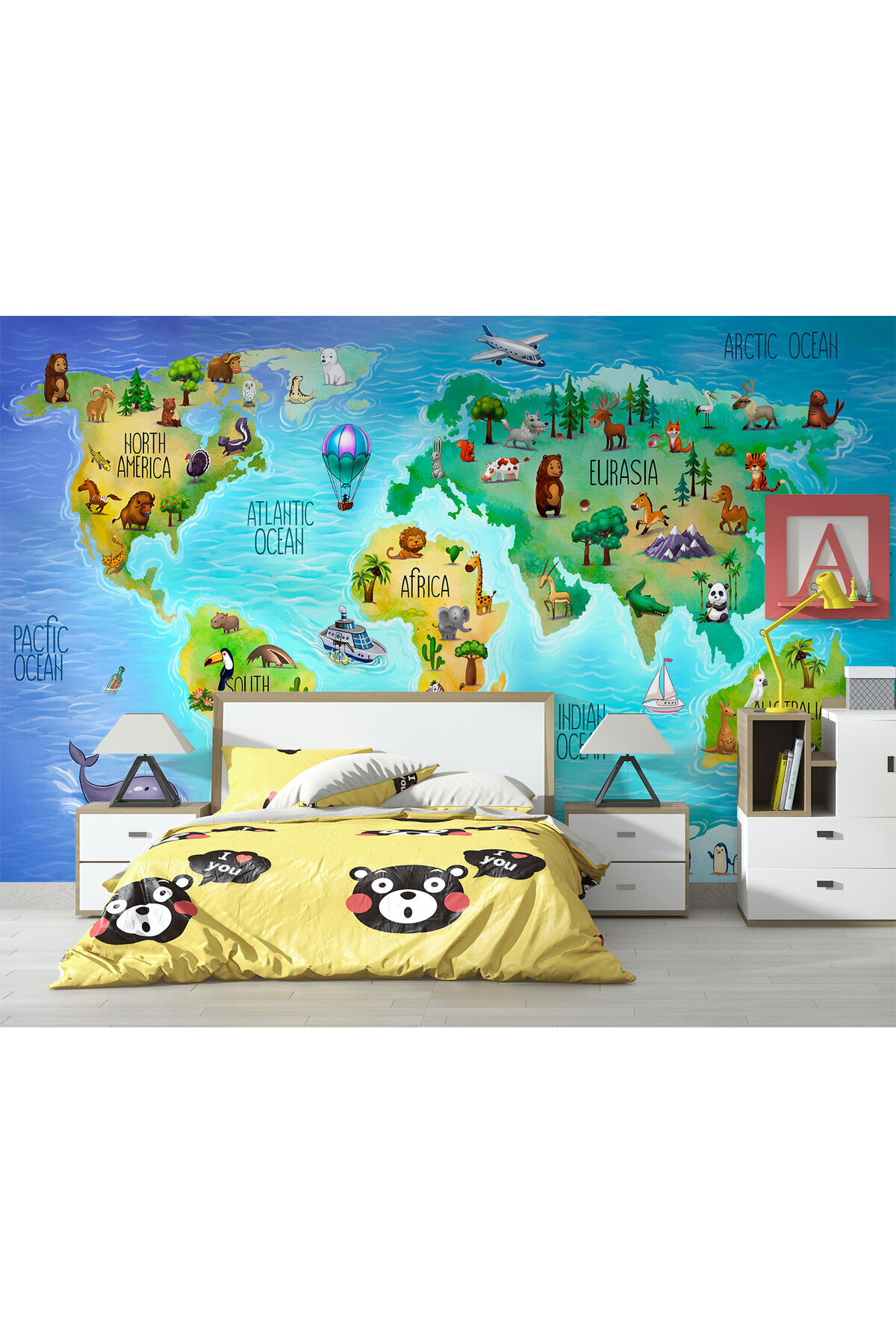 Dünya Haritası Çocuk Ve Bebek Odası Hayvanlar Alemi Duvar Kağıdı-3800 Dünya Haritası Çocuk Ve Bebek Odası Hayvanlar Alemi Duvar Kağıdı-3800 TT-dkharitasepeti3800k 200 x 350
