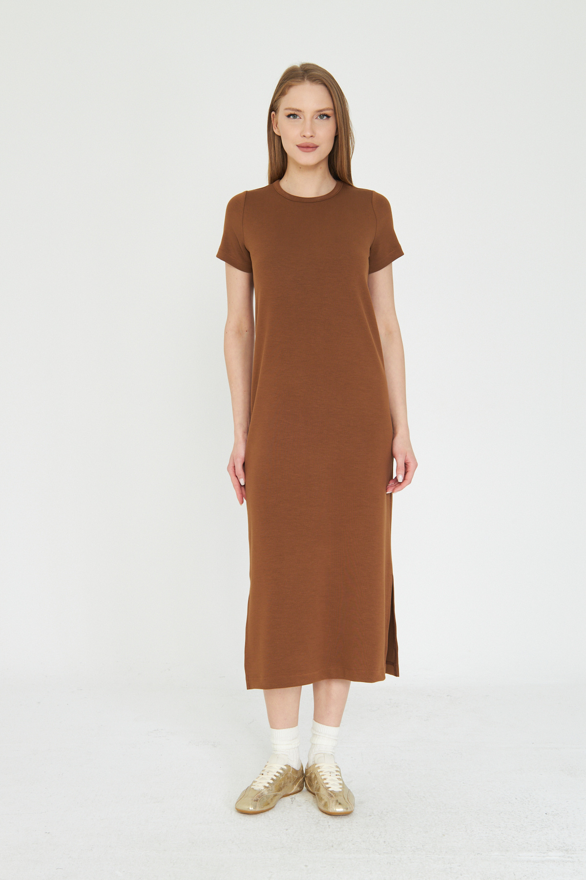 Kadın Kahverengi Basic Yazlık Modal Kumaş İçeren Yumuşak Dokulu Elbise Kadın Kahverengi Basic Yazlık Modal Kumaş İçeren Yumuşak Dokulu Elbise OYS1 XL