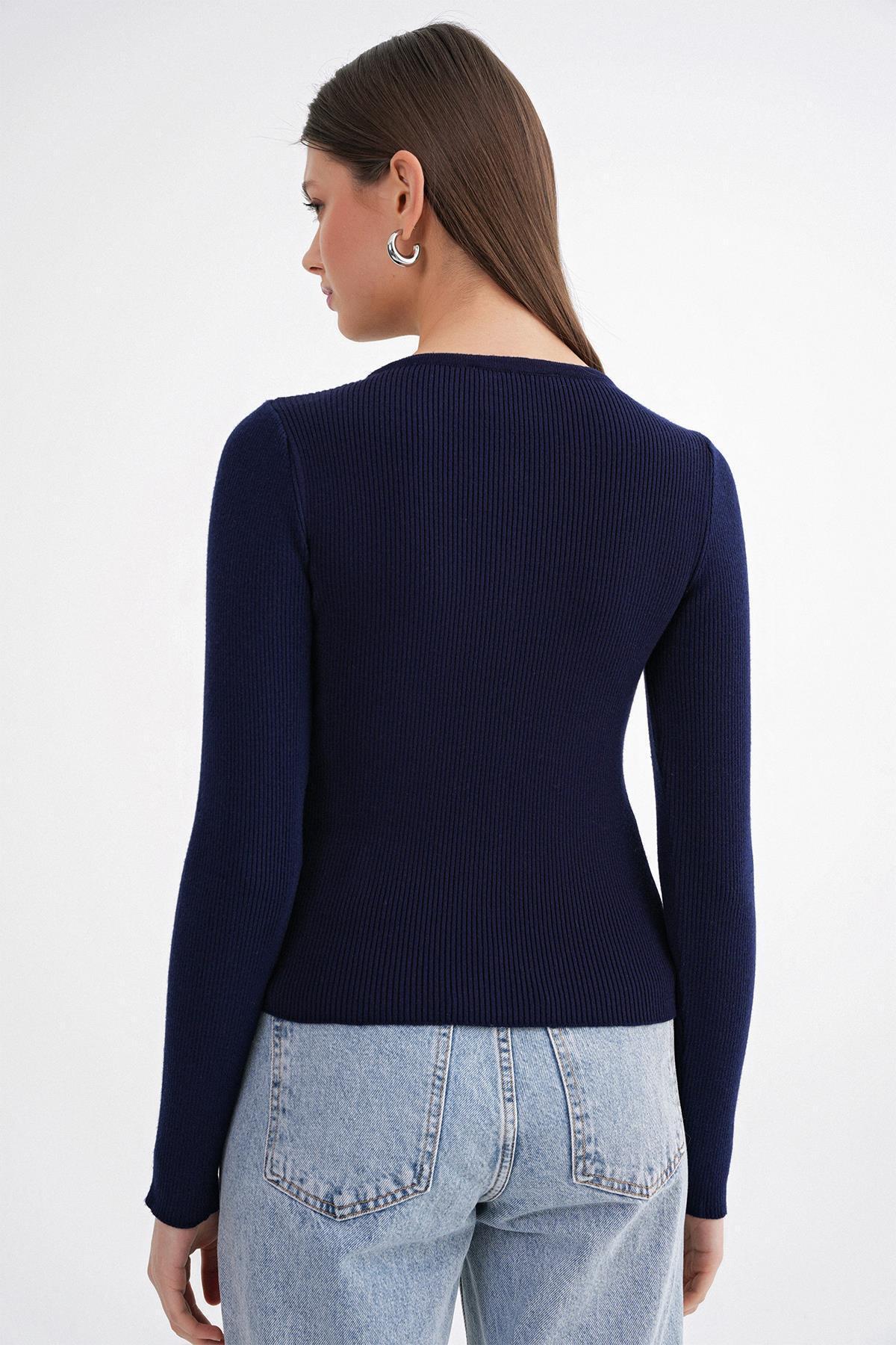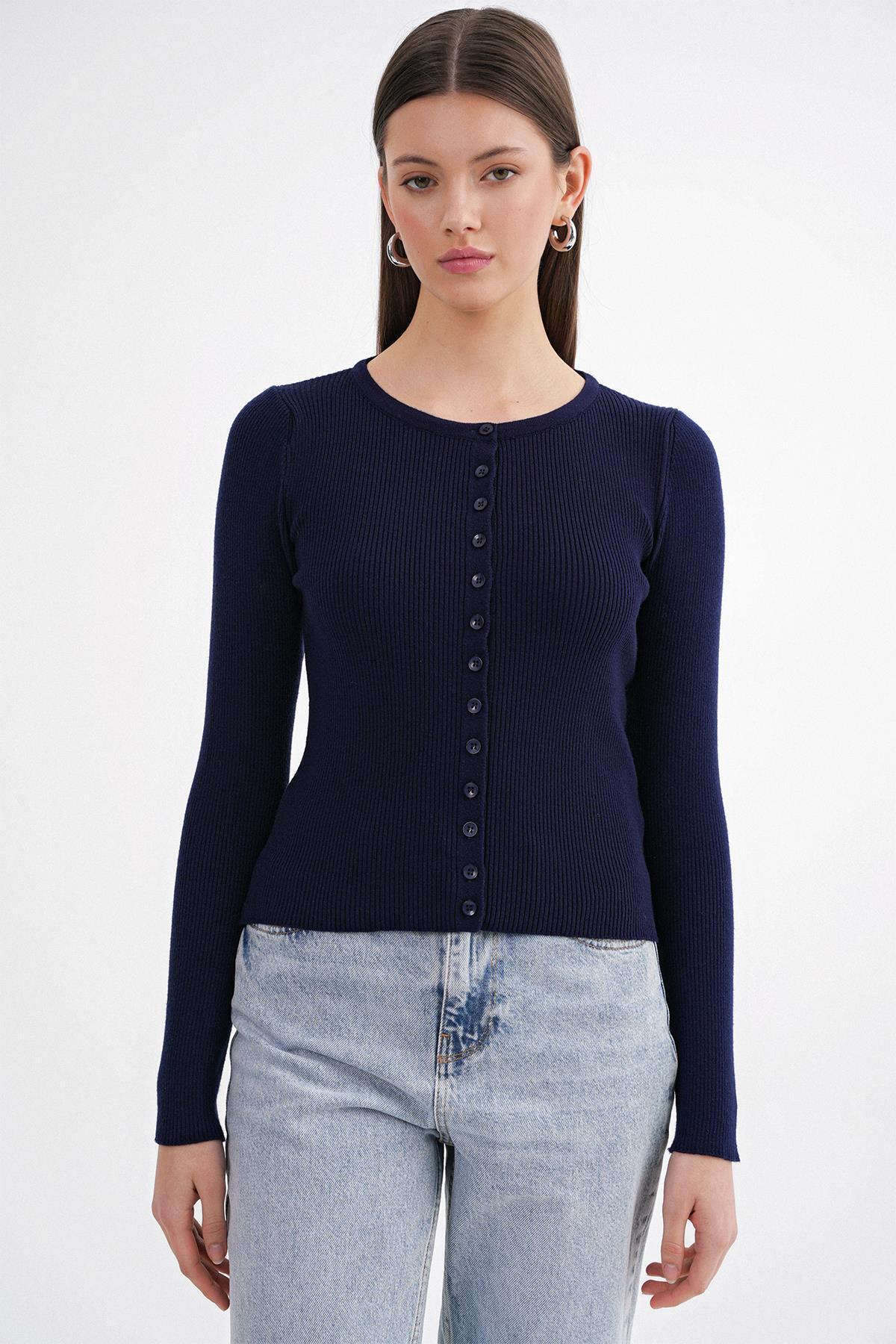 6931 Kadın Düğmeli Fitilli Triko Hırka Lacivert 6931 Kadın Düğmeli Fitilli Triko Hırka Lacivert Y25HRK6931 L