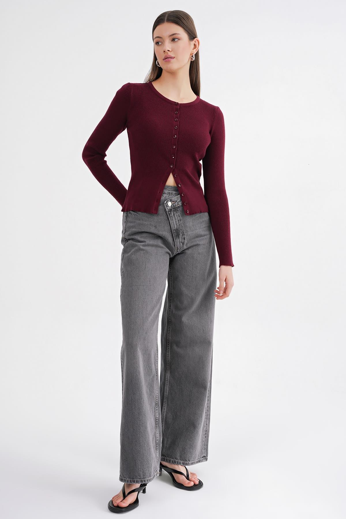 6931 Kadın Düğmeli Fitilli Triko Hırka Bordo 6931 Kadın Düğmeli Fitilli Triko Hırka Bordo Y25HRK6931 L