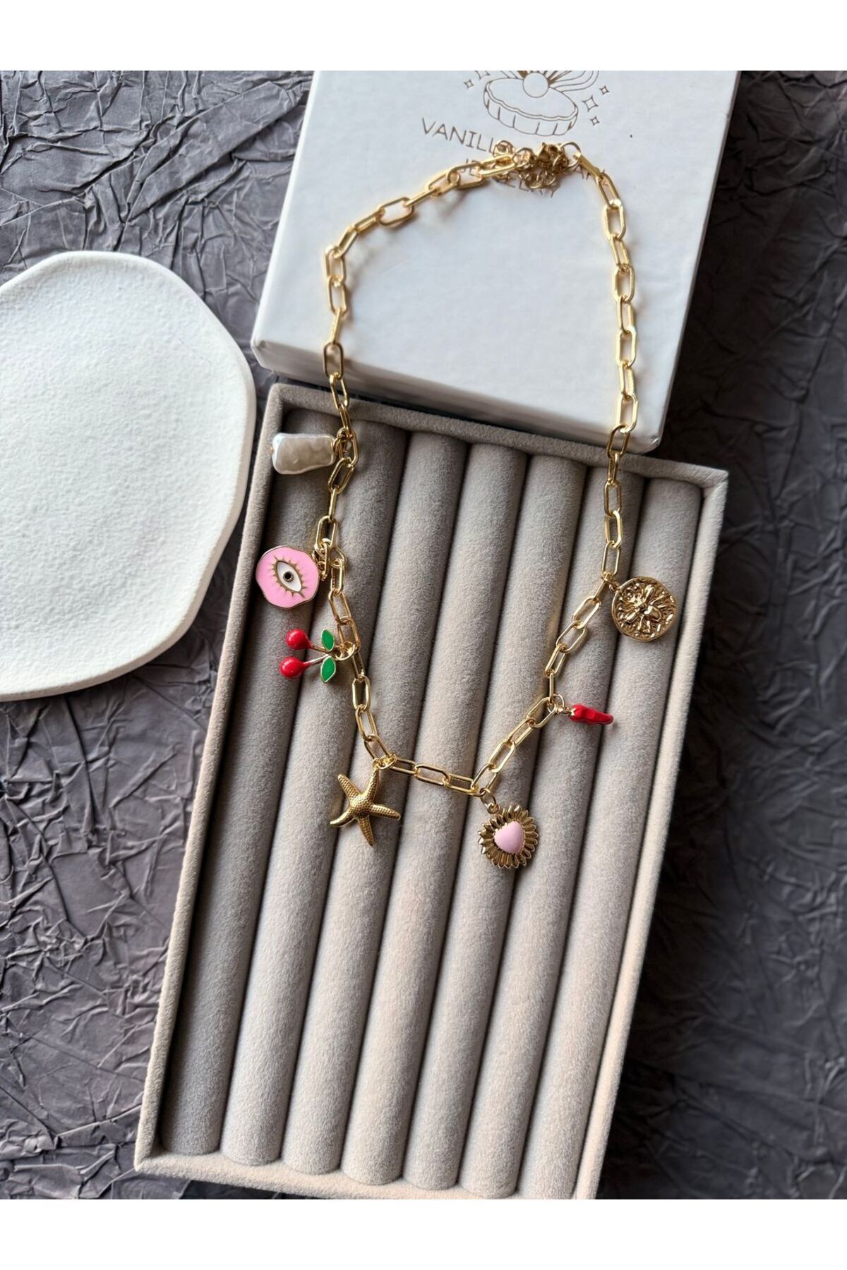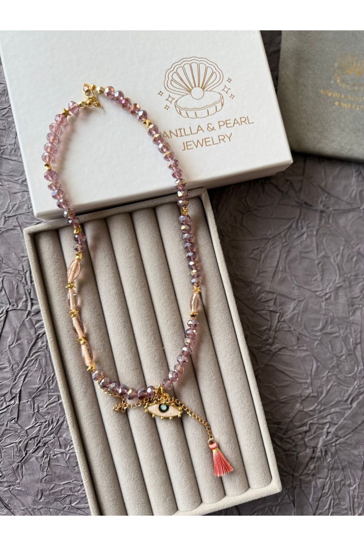Purple Line Design İncili Parlak Taşlı Kolye Purple Line Design İncili Parlak Taşlı Kolye kolyeinci 50 cm