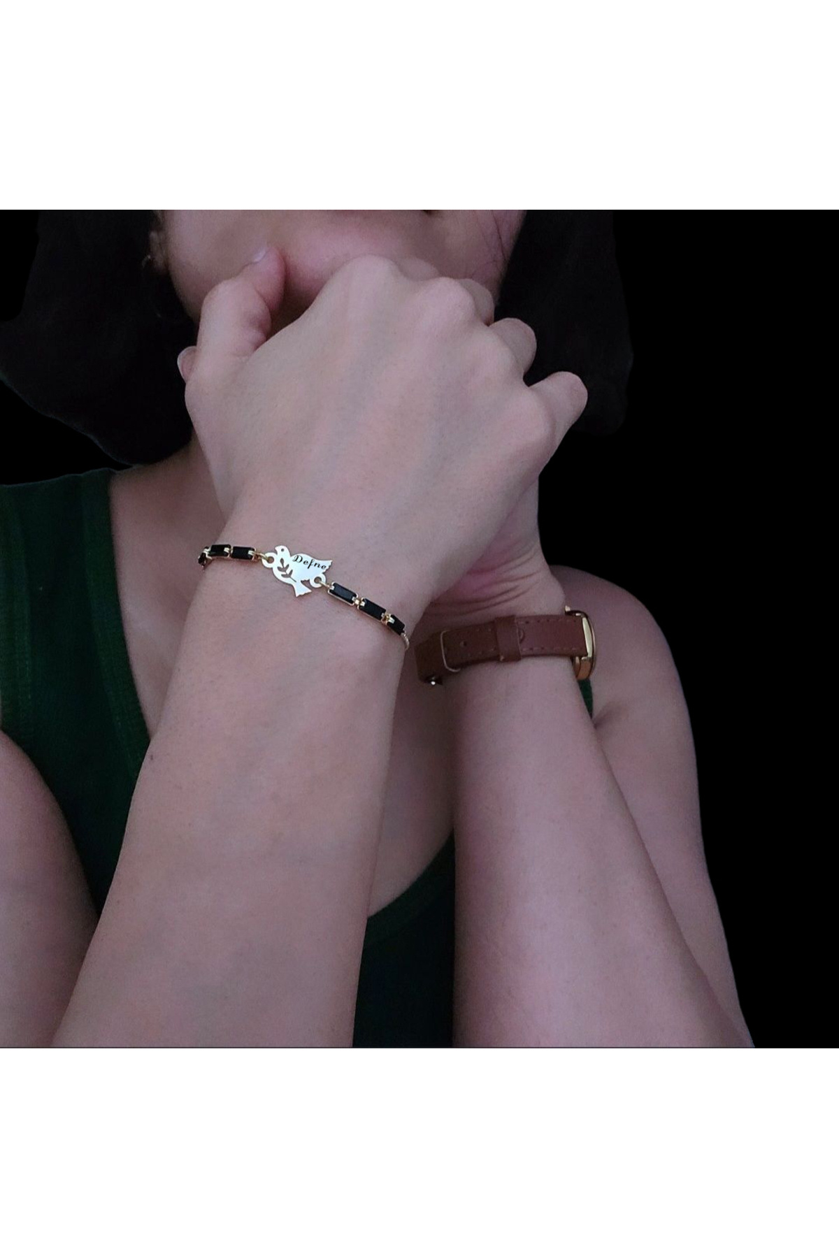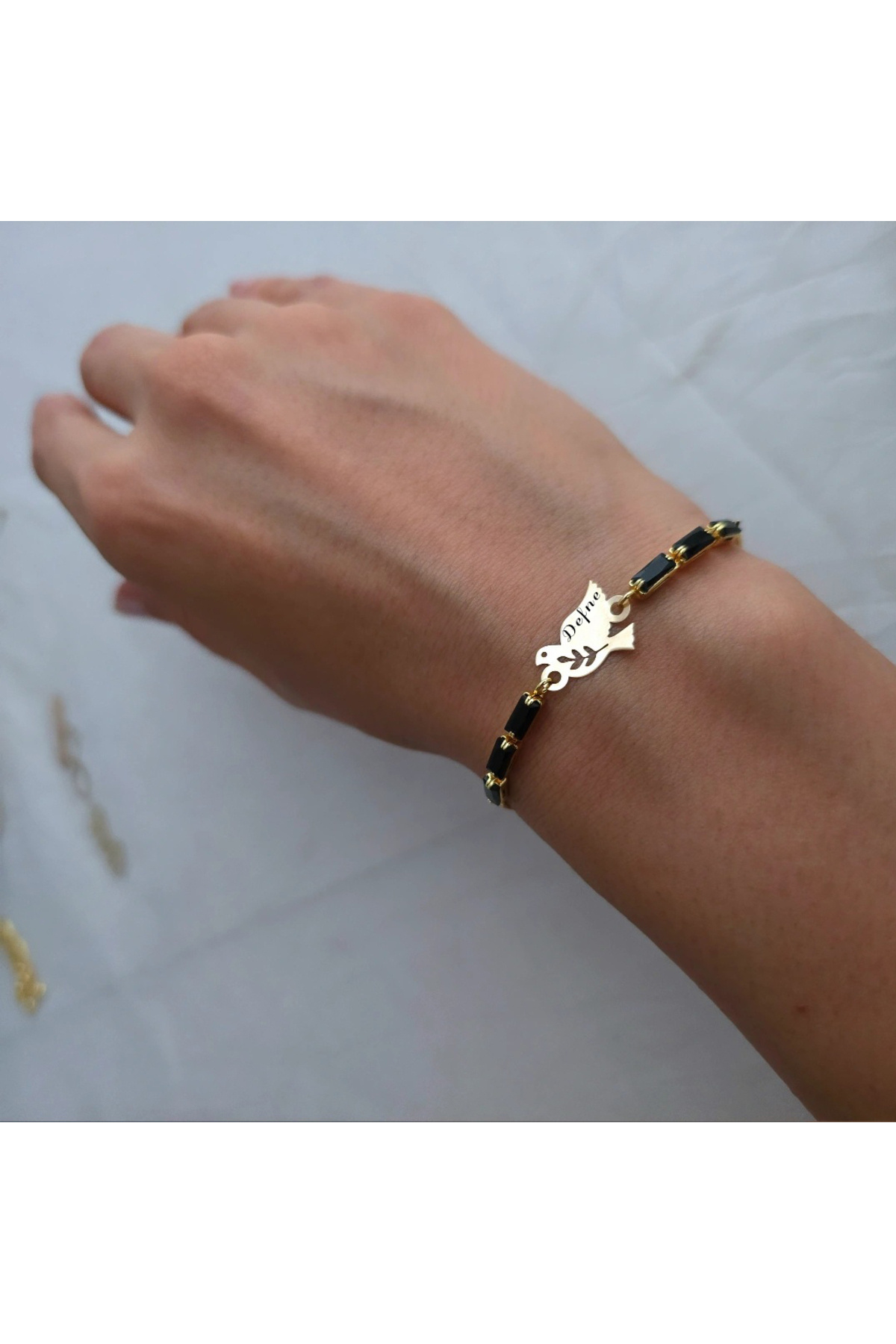 14 Ayar Plakalı Altın Zincirli, Kuş Figürlü Bayanlara Özel İsim Bilekliği-378isim-siyahtaş 14 Ayar Plakalı Altın Zincirli, Kuş Figürlü Bayanlara Özel İsim Bilekliği-378isim-siyahtaş 378-zanjsoyakus-osfg-MO1 24 cm