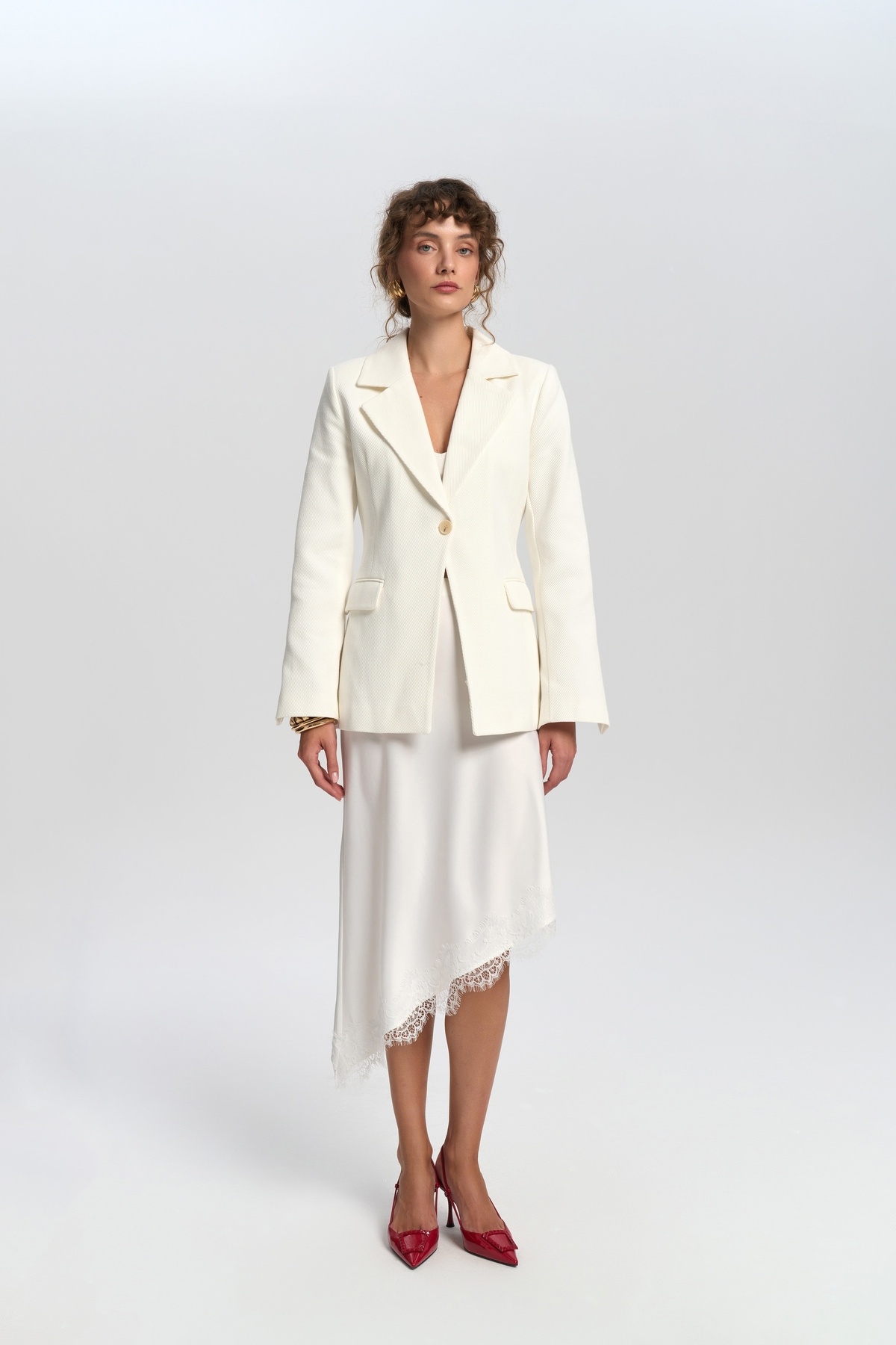 Anisah Belden Oturmalı Ekru Blazer Anisah Belden Oturmalı Ekru Blazer B34M3531W1 L