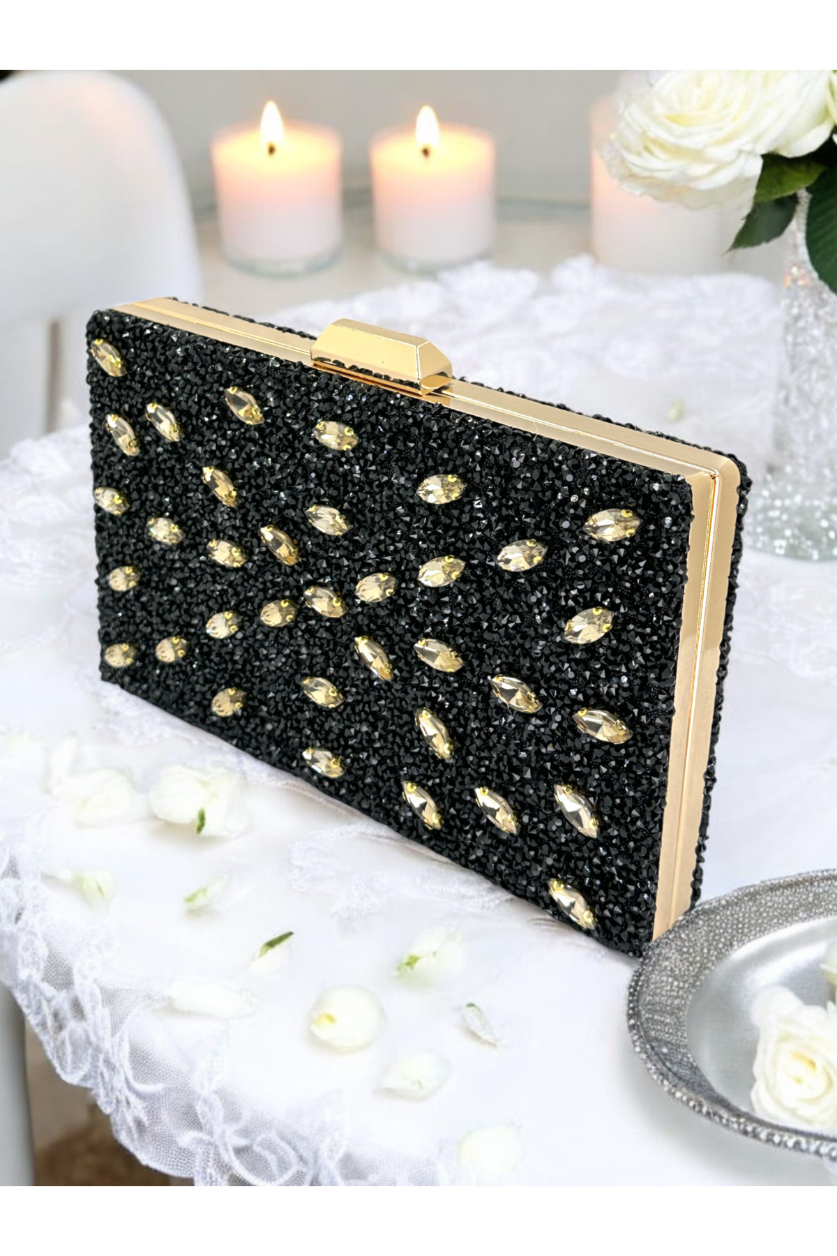 Siyah Renk Saten Taşlı Saplı Kadın Abiye Çanta Düğün Nişan Mezuniyet Siyah Renk Saten Taşlı Saplı Kadın Abiye Çanta Düğün Nişan Mezuniyet WF 130 - 84 Taşlı 1 تک سایز