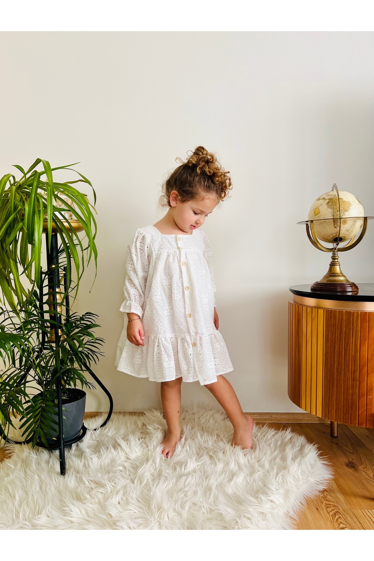 Ekru Fisto Önden Düğmeli Pamuk Astarlı Uzun Kol Kız Çocuk Kız Bebek Elbise Ekru Fisto Önden Düğmeli Pamuk Astarlı Uzun Kol Kız Çocuk Kız Bebek Elbise öndüğme 4-5 Yaş