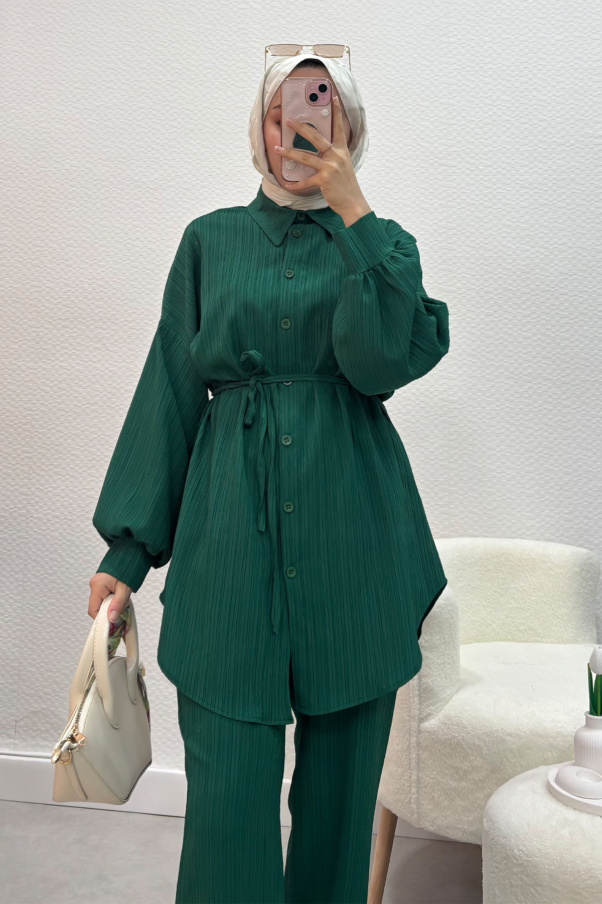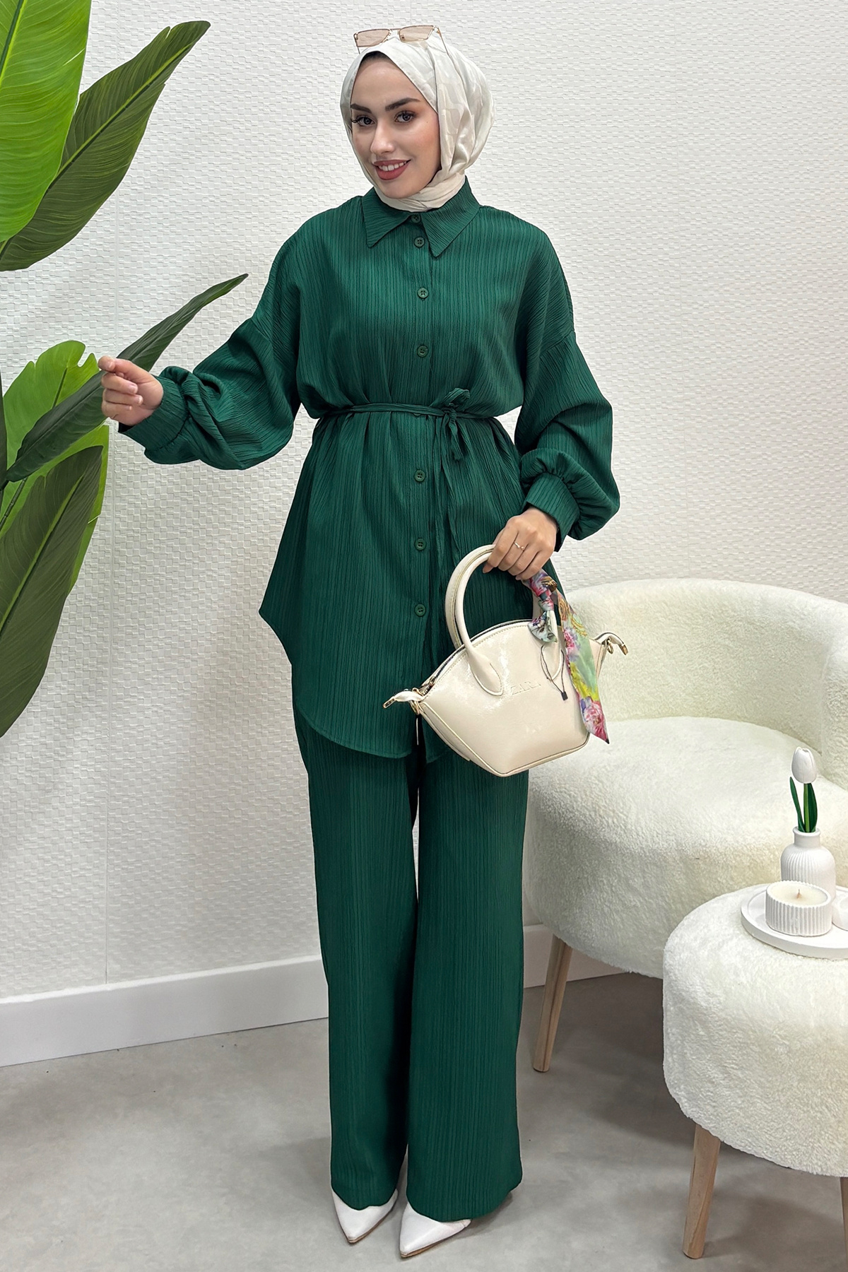 Kadın Balon Kol Bağcık Detaylı İkili Takım-Zümrüt Yeşili Kadın Balon Kol Bağcık Detaylı İkili Takım-Zümrüt Yeşili AYN201 XL