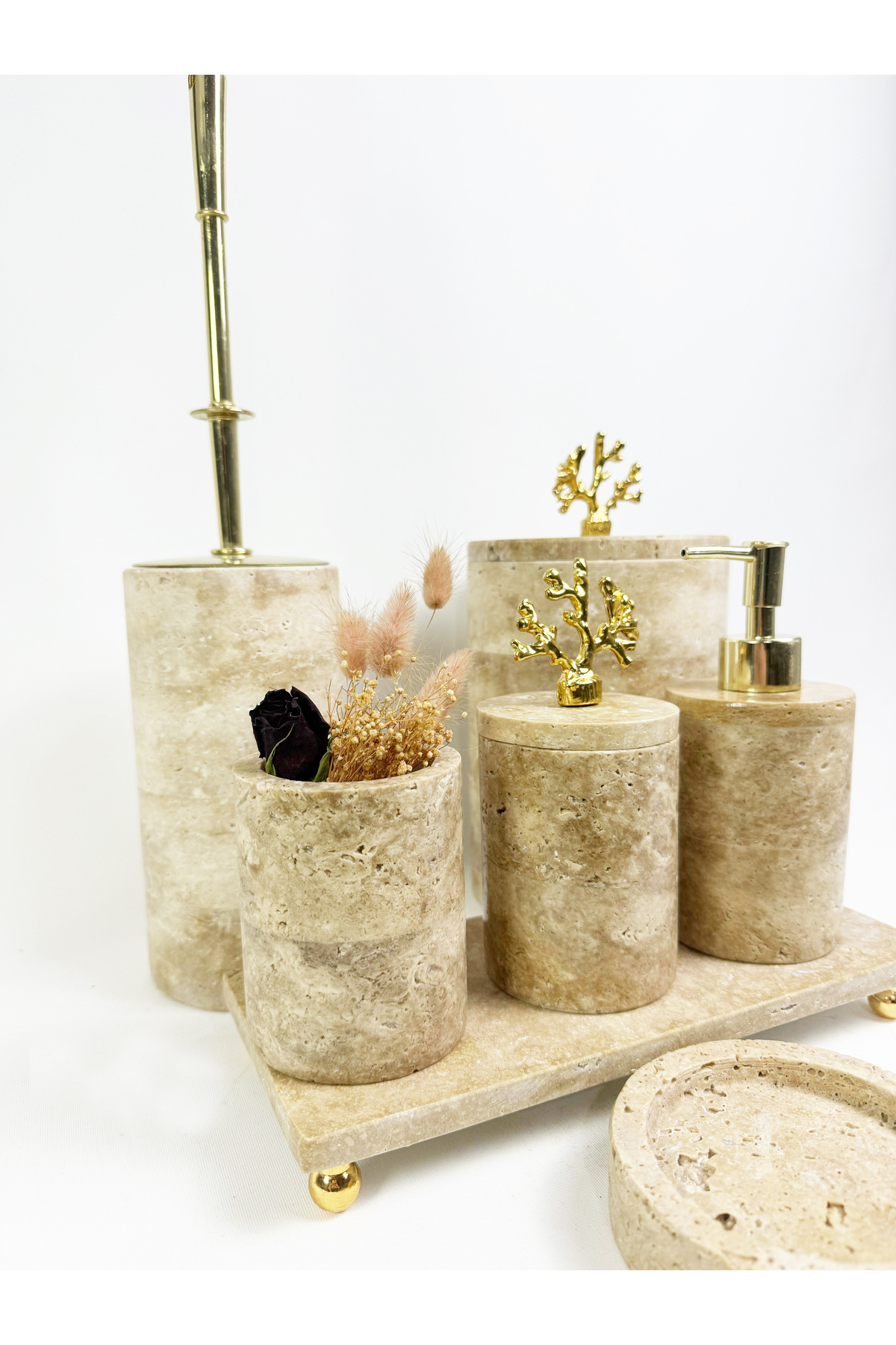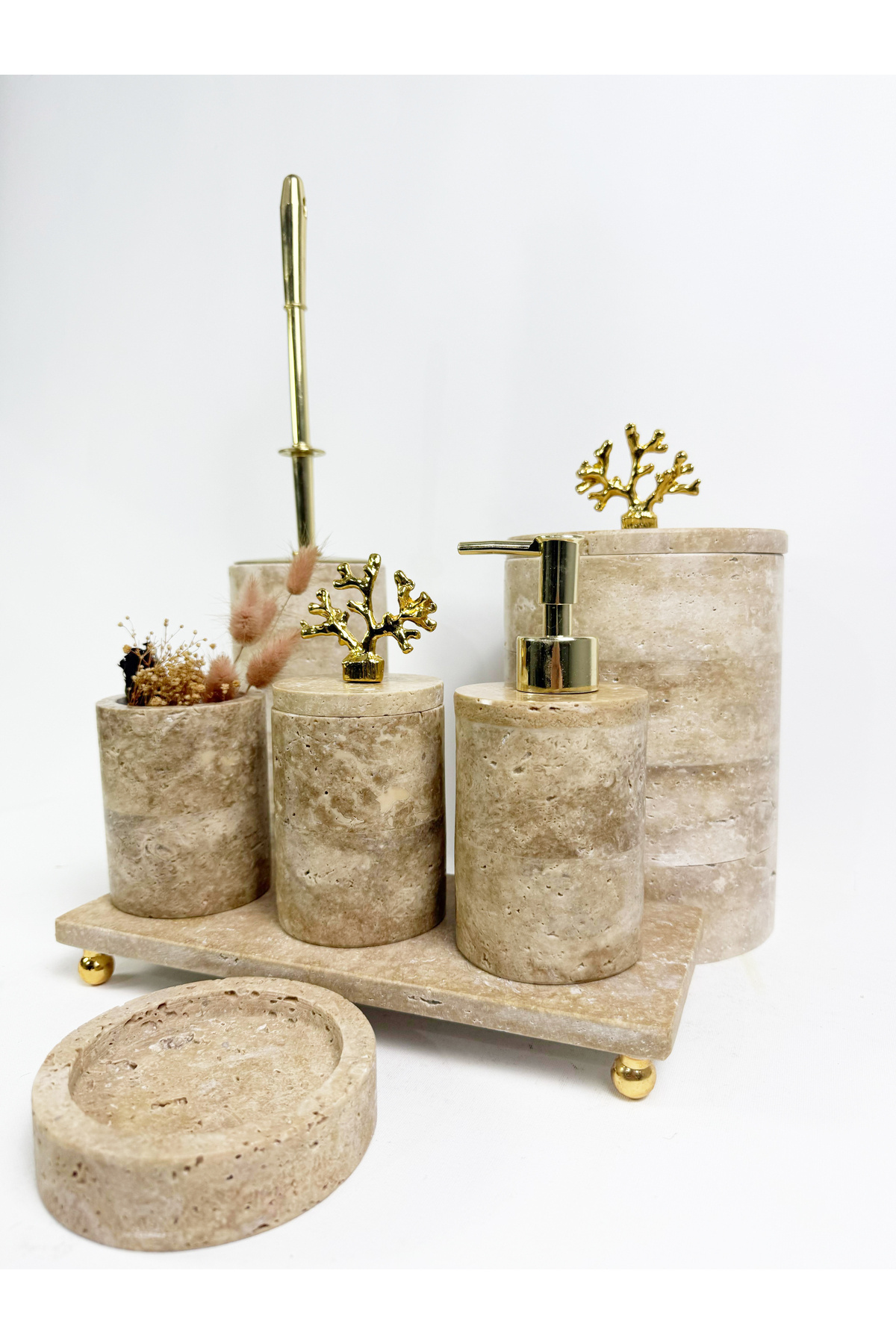 Traverten Banyo Seti Yuvarlak 7 Parça Gold Mercan Aksesuarlı Traverten Banyo Seti Yuvarlak 7 Parça Gold Mercan Aksesuarlı BATHMYROU0 تک سایز