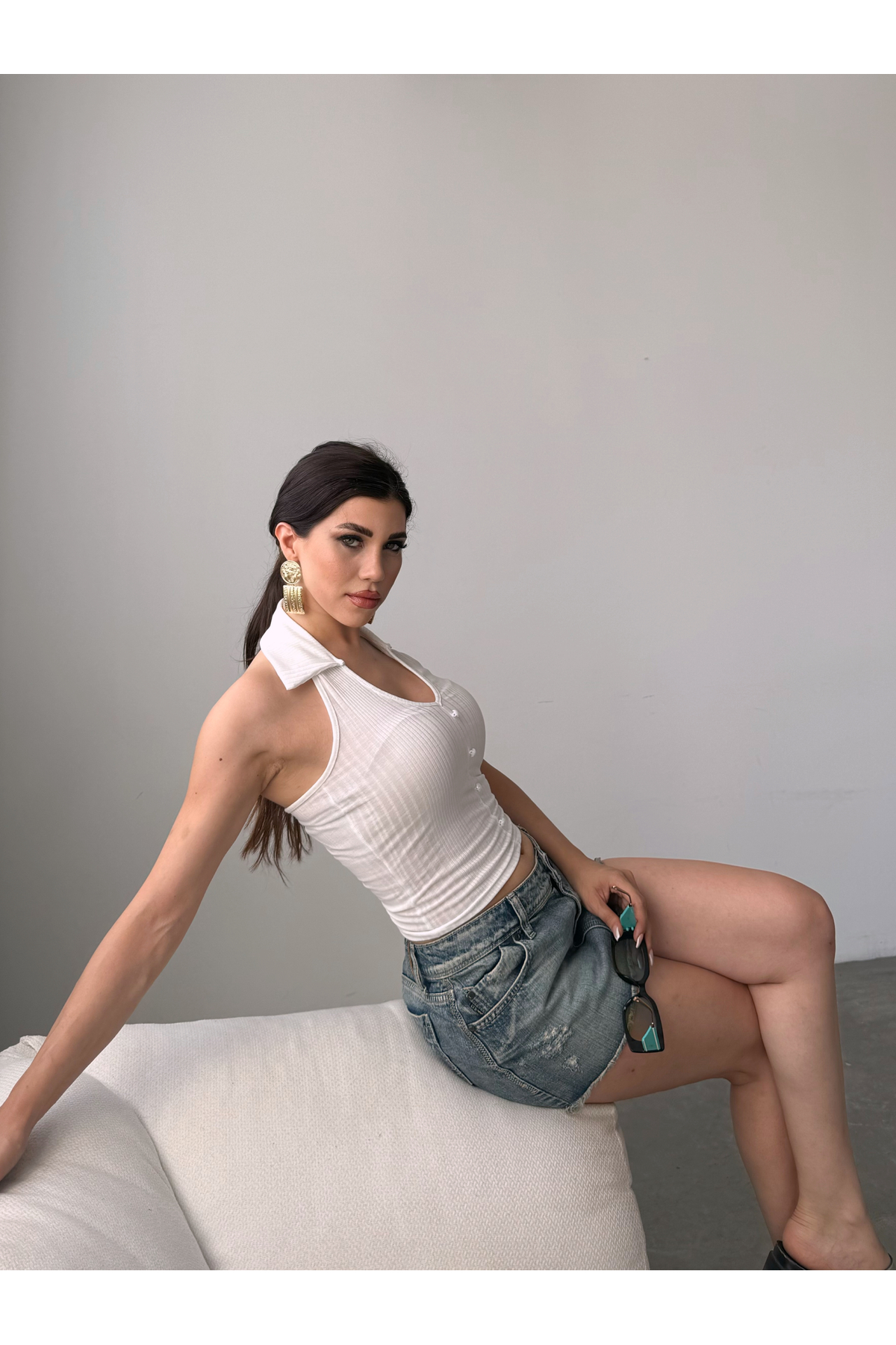 Kadın Askılı Kalp Yaka Sırtı Bağlama Detaylı Dantelli Asimetrik Bluz Beyaz Kadın Askılı Kalp Yaka Sırtı Bağlama Detaylı Dantelli Asimetrik Bluz Beyaz BLZ0253 L