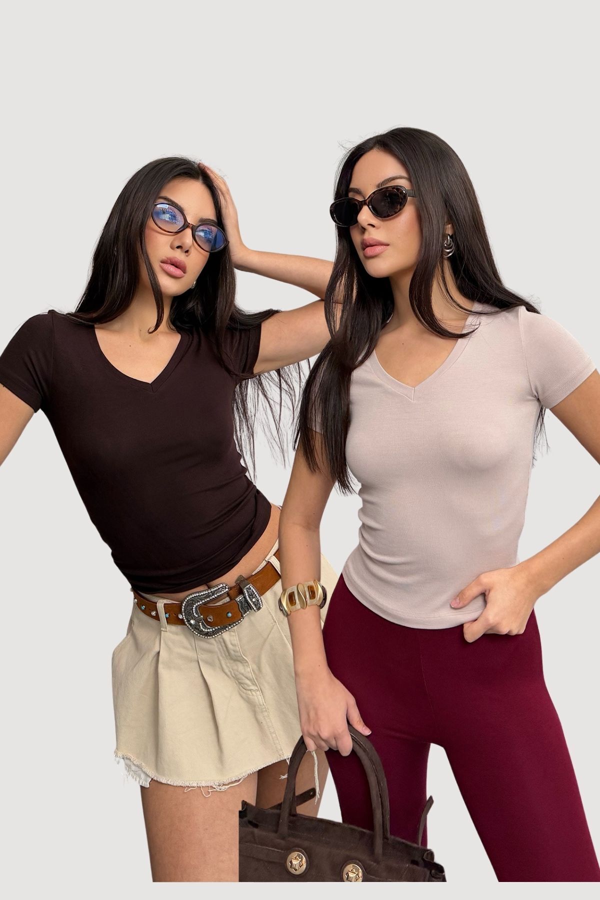 Kadın 2'li Paket Bej-Kahve V Yaka Buzy Modal Kumaş Basic Kısa Kol Bluz Kadın 2'li Paket Bej-Kahve V Yaka Buzy Modal Kumaş Basic Kısa Kol Bluz BLZ-202548 L