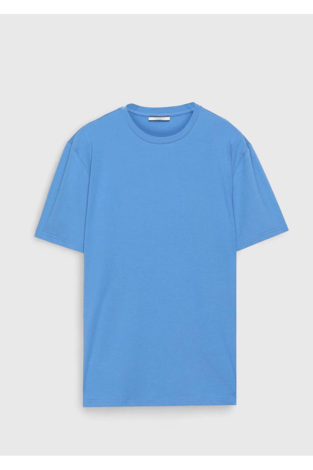 Mavi Düz Bisiklet Yaka Pamuk Karışımlı T-Shirt Mavi Düz Bisiklet Yaka Pamuk Karışımlı T-Shirt 50445 3XL