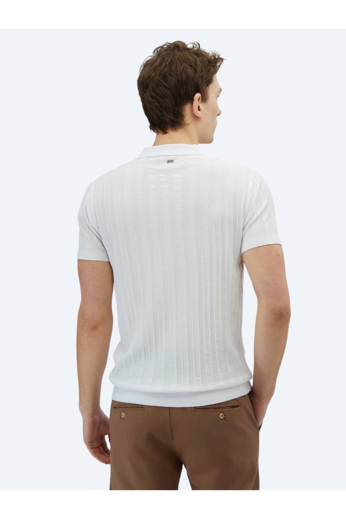 Kırık Beyaz Polo Yaka Desenli Triko Kırık Beyaz Polo Yaka Desenli Triko 50485 3XL