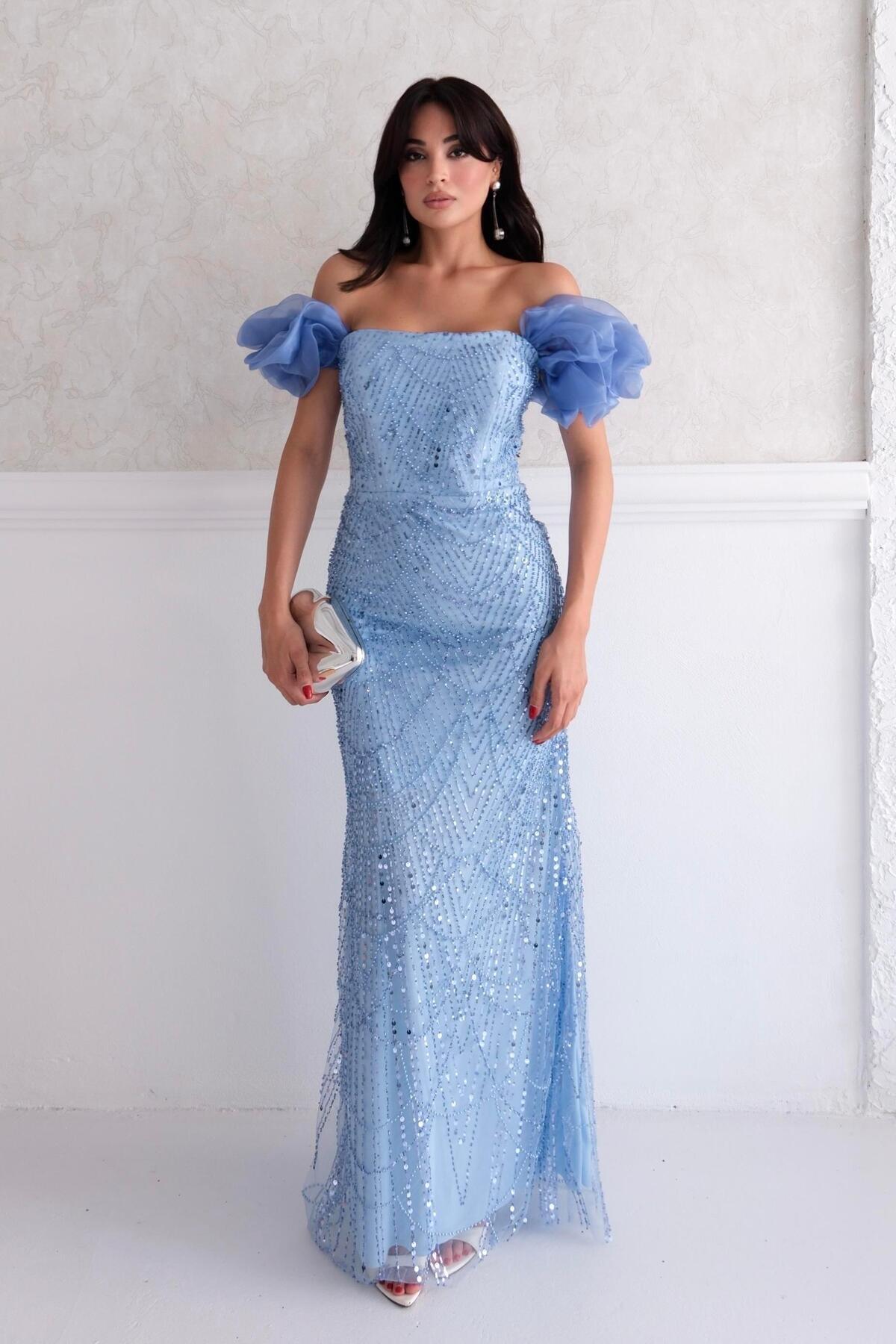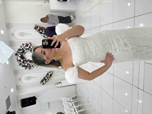Beyaz Balon Kol Detaylı Payet İşlemeli Straplez Abiye Elbise Beyaz Balon Kol Detaylı Payet İşlemeli Straplez Abiye Elbise ST5680-1053 44