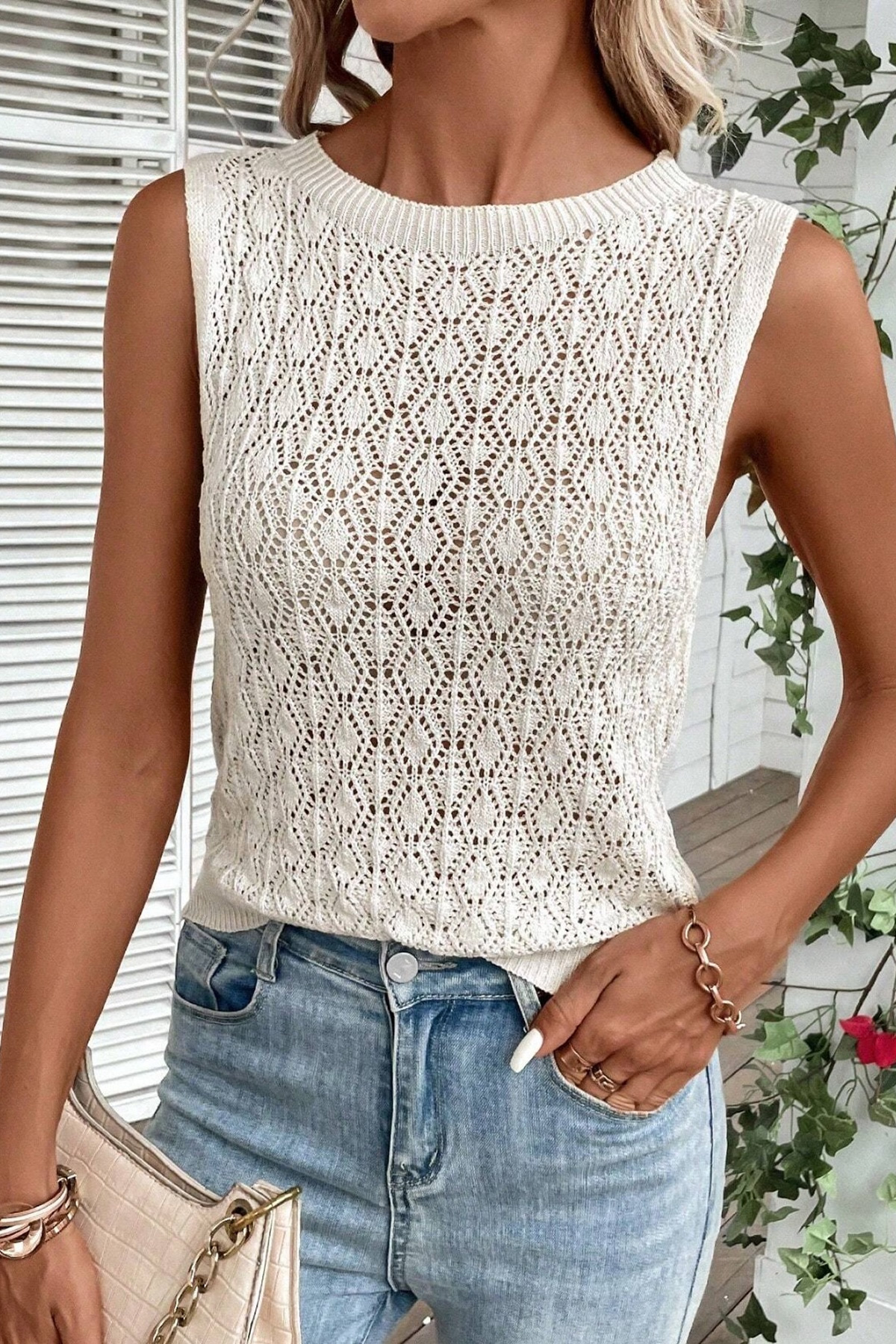 Kadın Örme Detay Bisiklet Yaka Ajurlu Kolsuz Beyaz Triko Bluz Kadın Örme Detay Bisiklet Yaka Ajurlu Kolsuz Beyaz Triko Bluz CS-22299 2XL