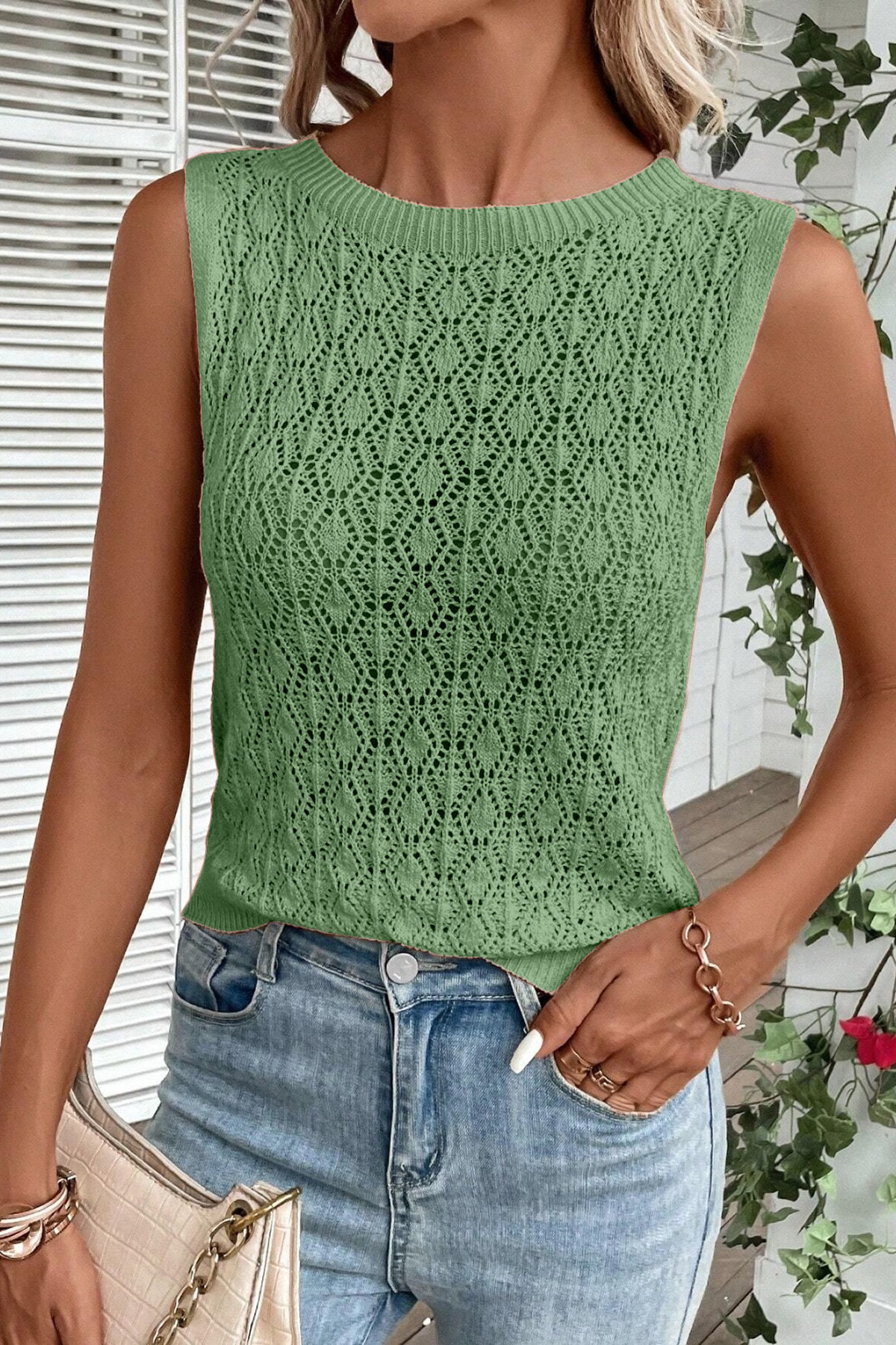 Kadın Örme Detay Bisiklet Yaka Ajurlu Kolsuz Mint Triko Bluz Kadın Örme Detay Bisiklet Yaka Ajurlu Kolsuz Mint Triko Bluz CS-22299 2XL