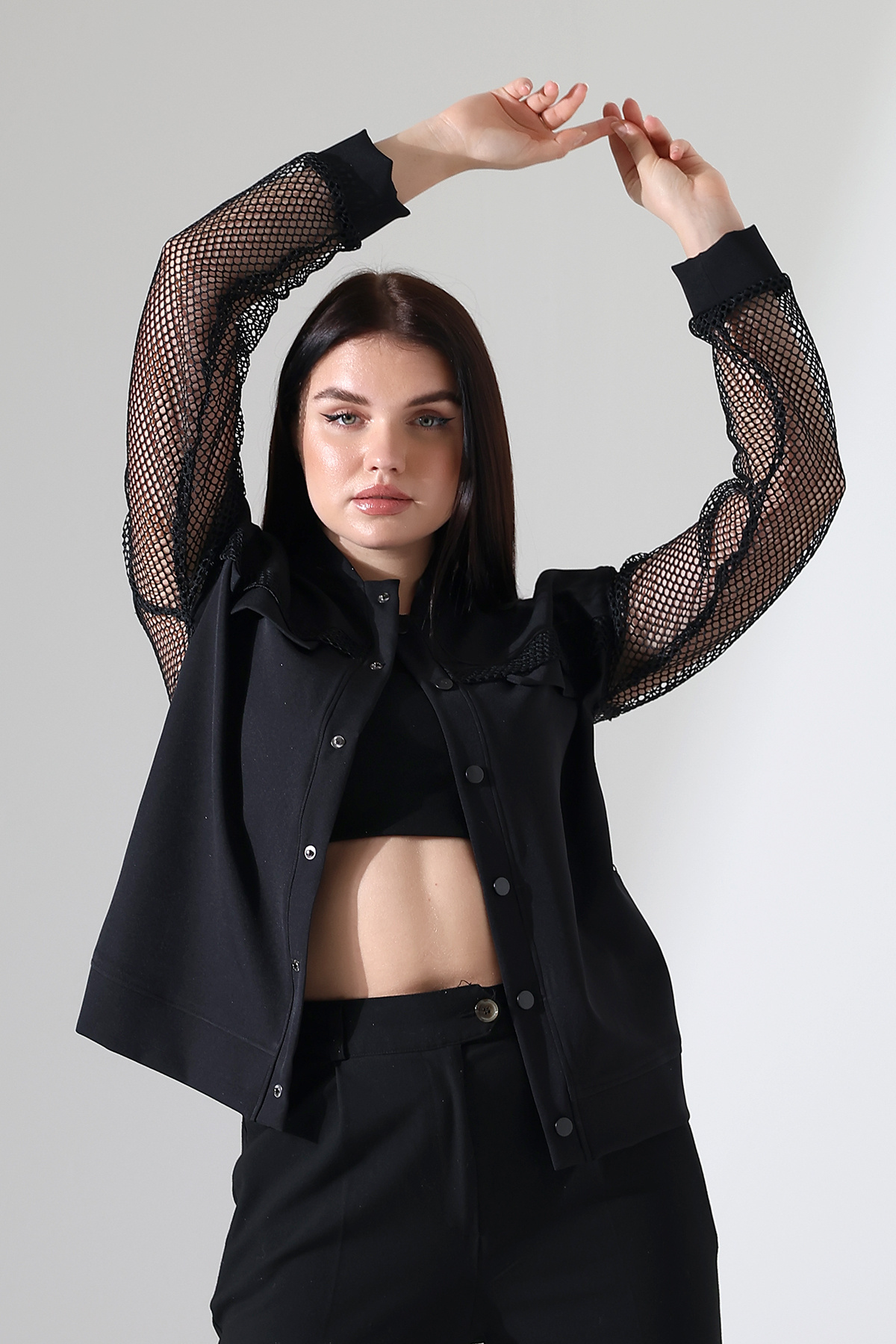 File Detaylı Beli Büzgülü Ceket File Detaylı Beli Büzgülü Ceket 40Y5CKT00108BS L