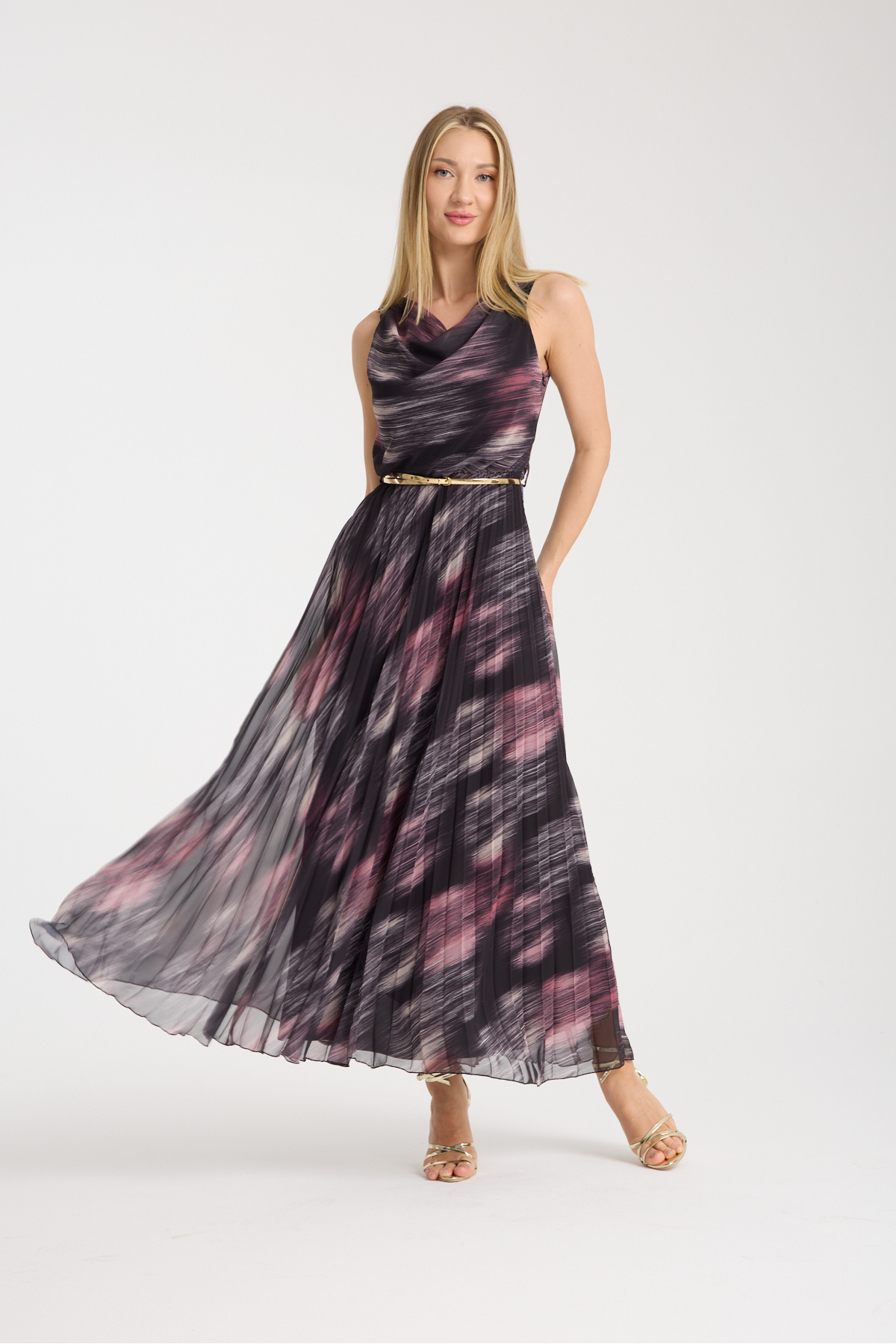 SİYAH ÜZERİ MOR VE PEMBE DESENLİ PLİSE ELBİSE SİYAH ÜZERİ MOR VE PEMBE DESENLİ PLİSE ELBİSE P8LK738GBF 48
