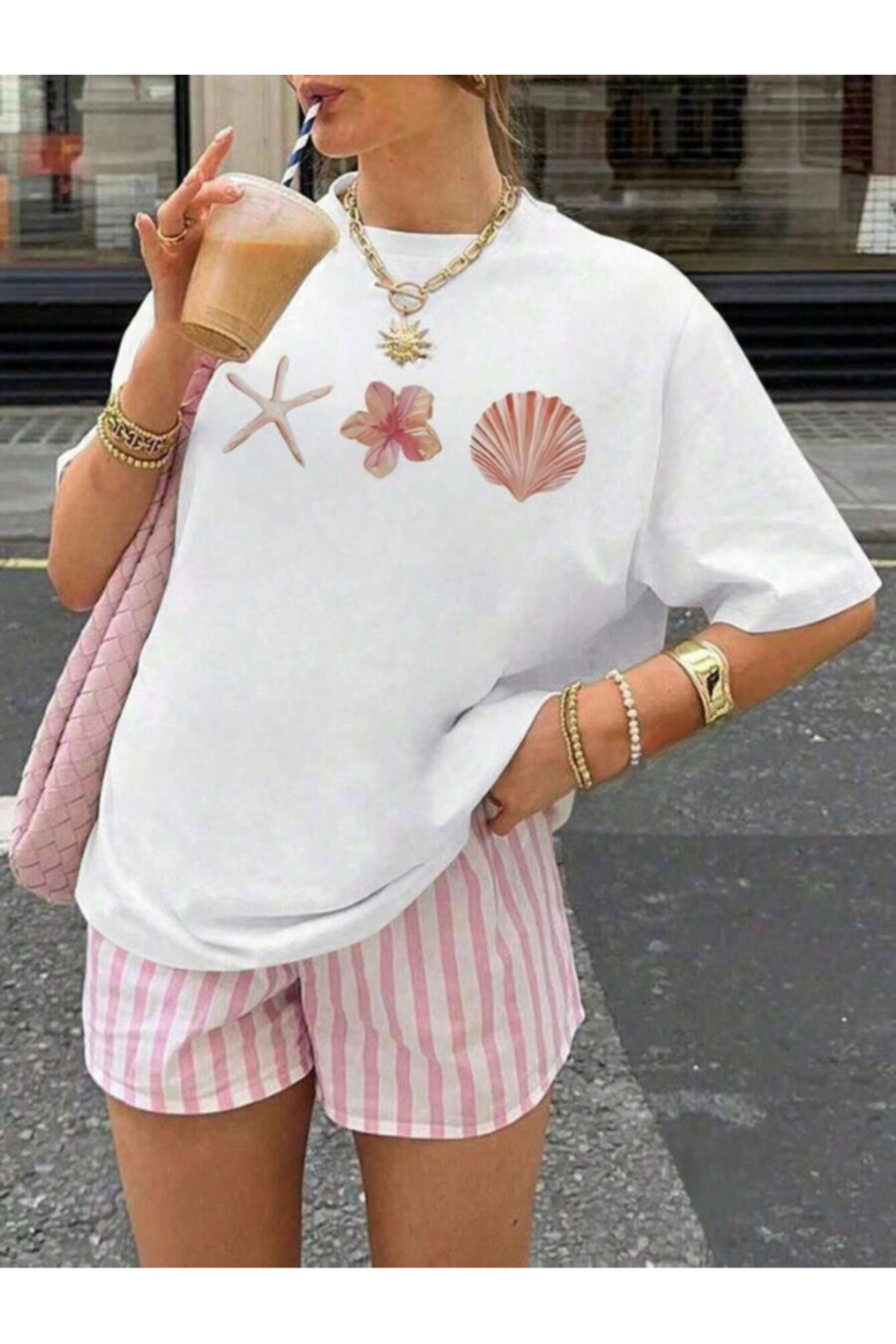 Oversize Kadın Leopar Kurdele Desenli T-shirt Beyaz Oversize Kadın Leopar Kurdele Desenli T-shirt Beyaz B-26-04-29 2XL