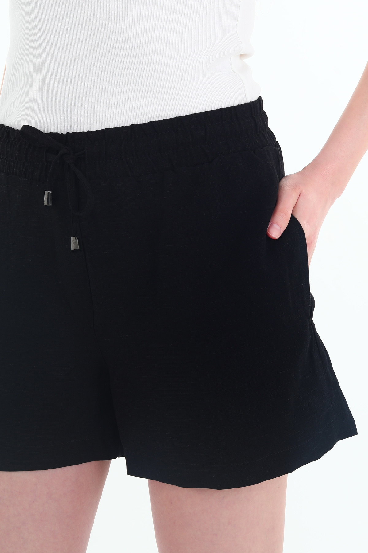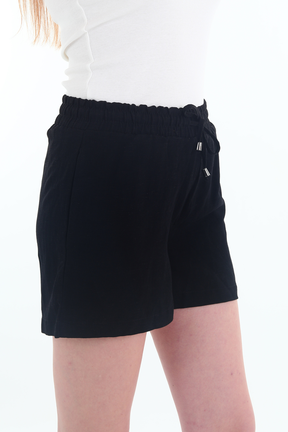 Kadın Siyah Bağlama Detaylı Mini Keten Şort Kadın Siyah Bağlama Detaylı Mini Keten Şort İKİZLER279 XL