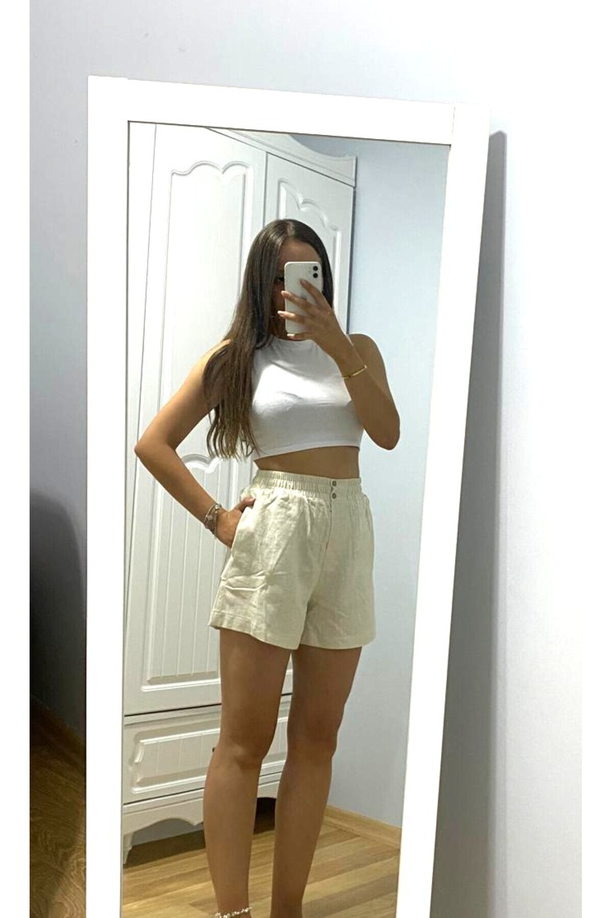 Kadın Mavi Bağlama Detaylı Keten Şort Kadın Mavi Bağlama Detaylı Keten Şort İKİZLER279 XL