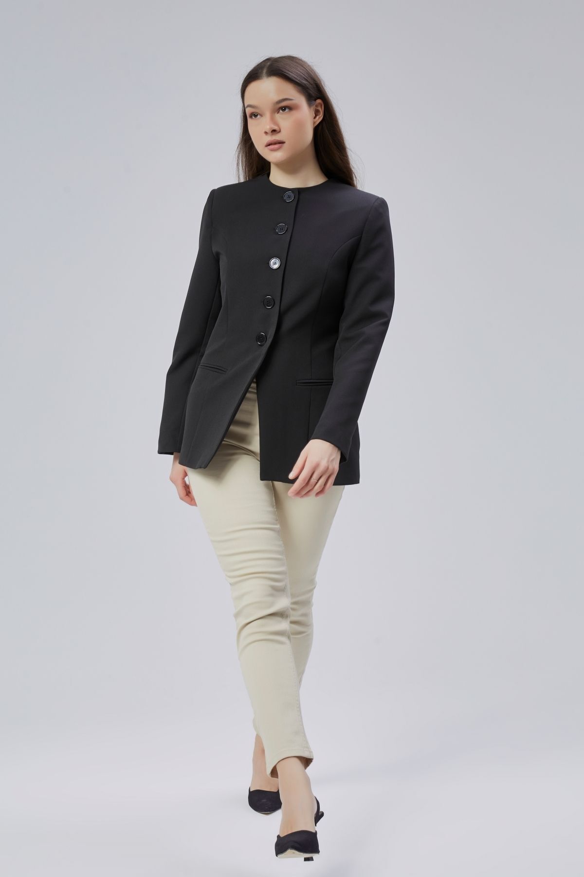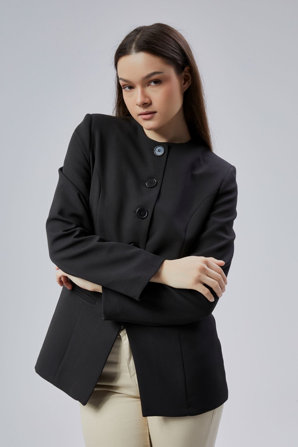 Siyah Bisiklet Yaka Regular Dokuma Ceket Siyah Bisiklet Yaka Regular Dokuma Ceket 44852 2XL