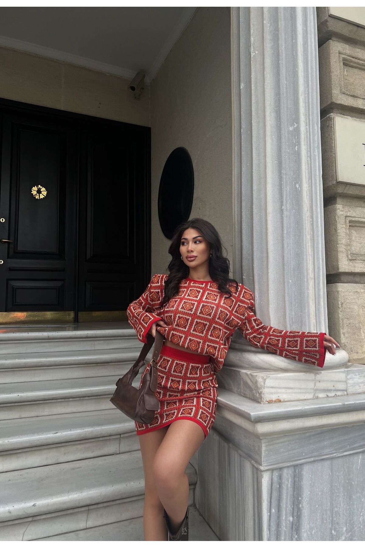 Soğuk İplik Fitilli İnci Düğmeli Yelek Etek Takım Soğuk İplik Fitilli İnci Düğmeli Yelek Etek Takım parafstyle5668 L
