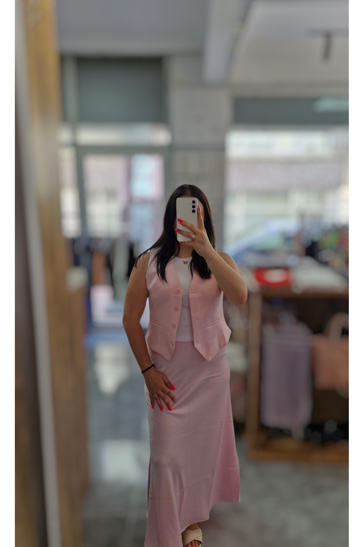 Soğuk İplik Fitilli İnci Düğmeli Yelek Etek Takım Soğuk İplik Fitilli İnci Düğmeli Yelek Etek Takım parafstyle5668 L