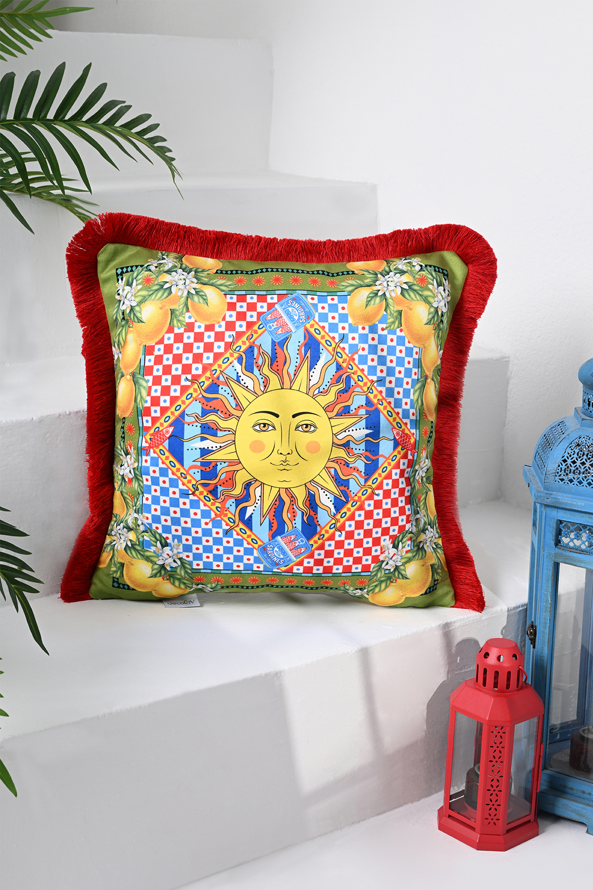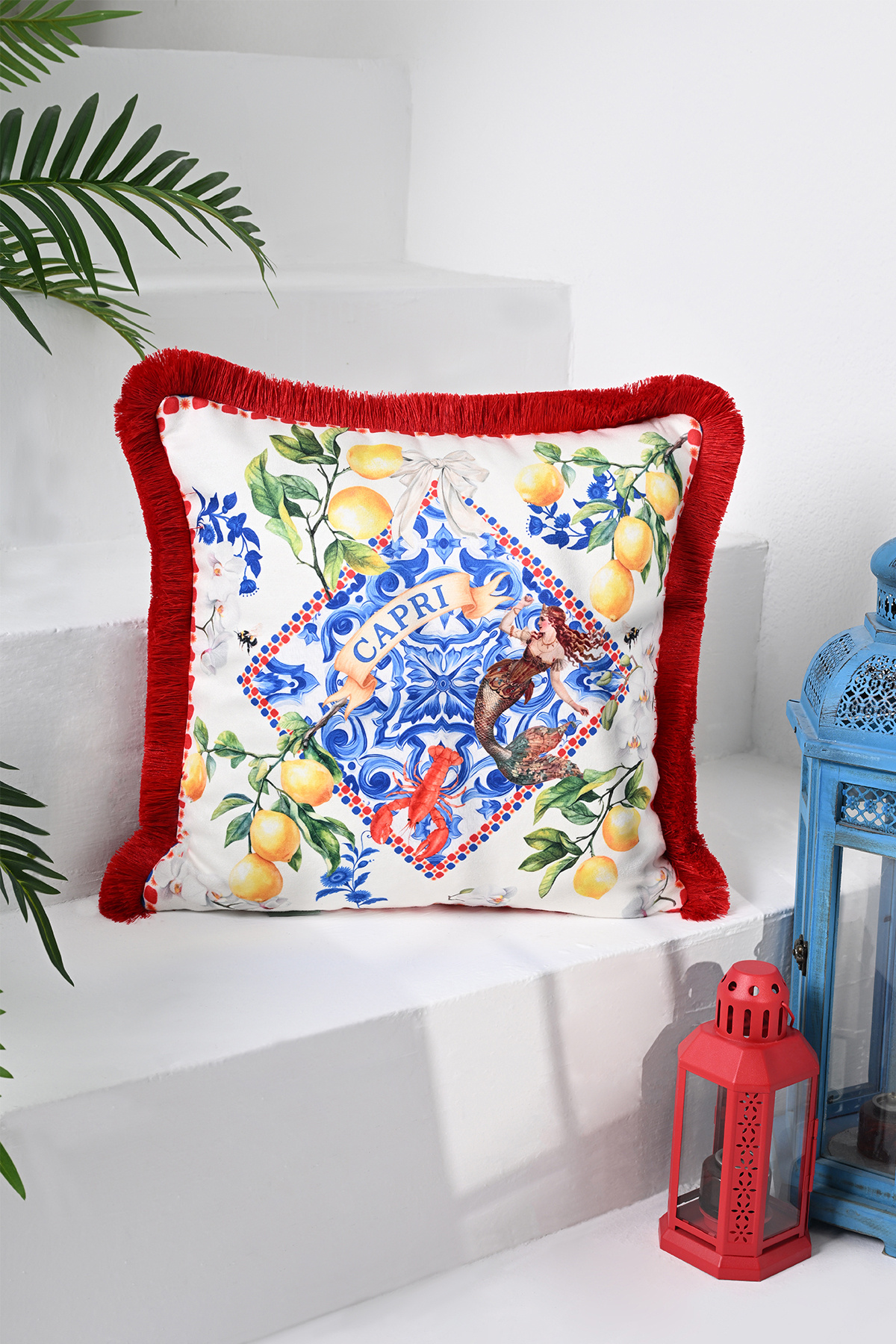 Mavi Çini Desen Tasarımlı Fitilli Kırlent Kılıfı - 43x43cm Mavi Çini Desen Tasarımlı Fitilli Kırlent Kılıfı - 43x43cm K1029 43 x 43